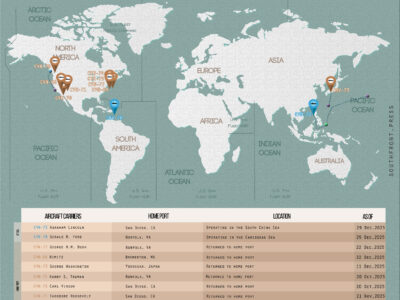 This is the newest update of the ‘U.S. Carrier Strike Groups Locations Map’ exclusive series showing the approximate locations of…