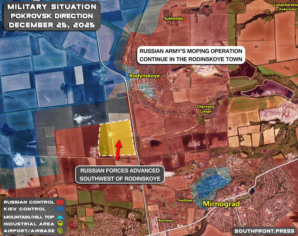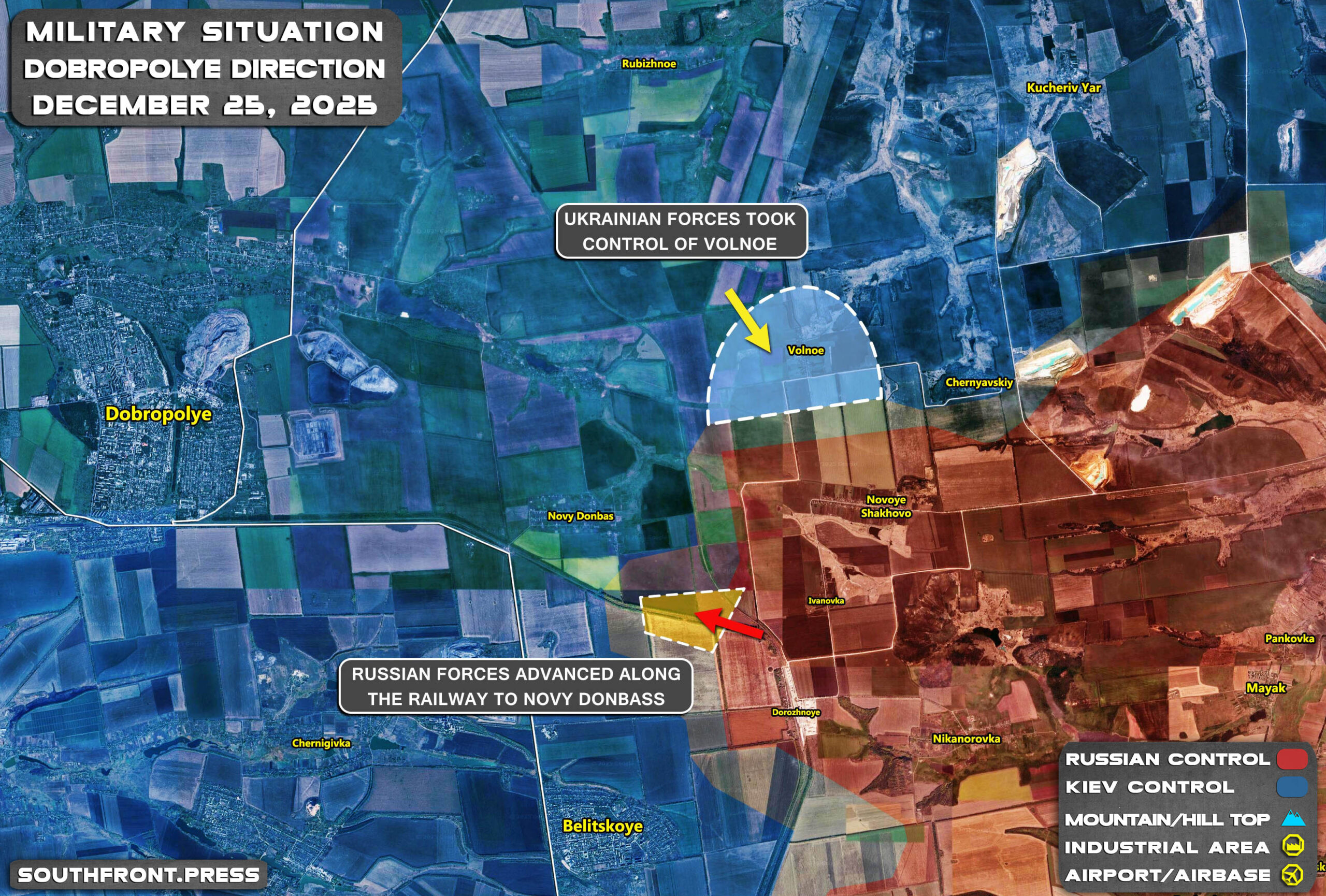 On December 25, the Russian military expanded its control in the city of Myrnohrad, also known as Dimitrov, and nearby areas, moving closer to a decisive victory there, all while preparing to attack the city of Dobropillya to the north in Donetsk.