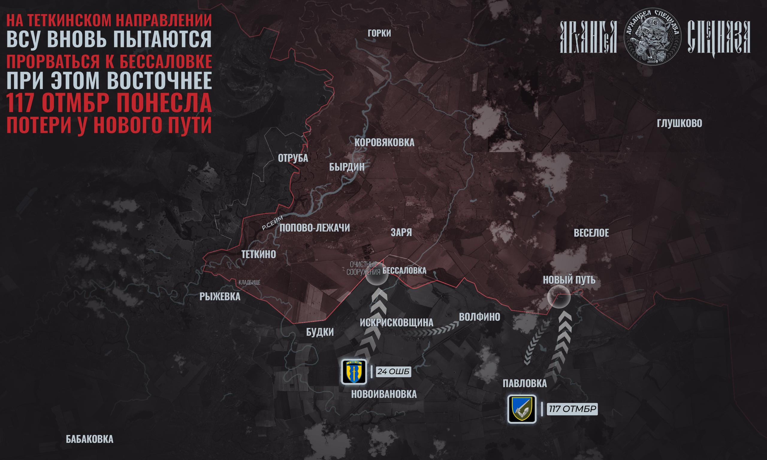 There has also been activity in the area around the Novy Shlyakh settlement in the Glushkovsky district, where units of the 17th Separate Heavy Mechanized Brigade (Kryvyi Rih) of the Ukrainian Armed Forces have attempted to advance into the border zone several times. Russian units are countering the advance using FPV drones in the tree lines. It is reported that one of the Ukrainian assault groups was withdrawn to Pavlovka due to losses incurred.