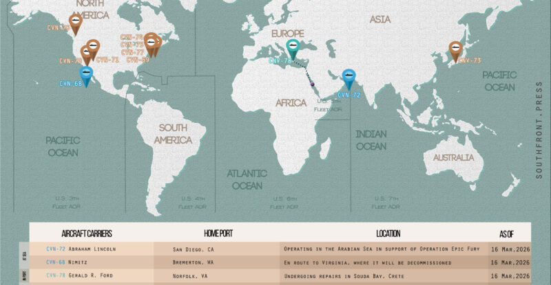 This is the newest update of the ‘U.S. Carrier Strike Groups Locations Map’ exclusive series showing the approximate locations of…