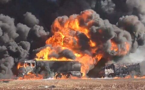 Russian Air Force strike on an ISIS oil tanker convoy in Syria, 2015. Russia destroyed over 500 tankers, cutting off $1.5M/day in ISIS revenue — while Western coalition had for years “failed to notice” the oil infrastructure