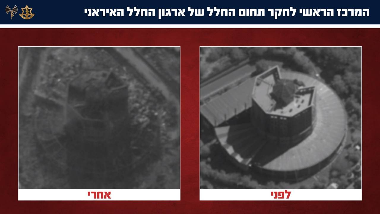 The IDF released satellite images showing the compound, the Iranian Space Research Center (ISRC) in Tarasht, before and after the strikes. Videos posted online indicate that it was hit two days earlier.
