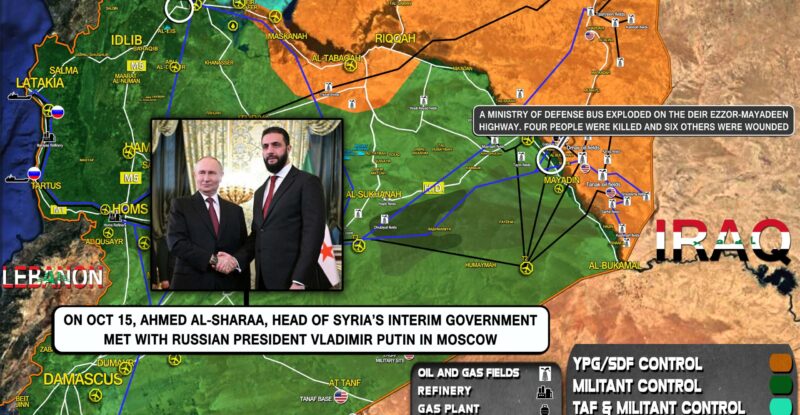 On oct 15, Ahmed Al-Sharaa, head of Syria’s interim government met with Russian President Vladimir Putin in Moscow; A Ministry…
