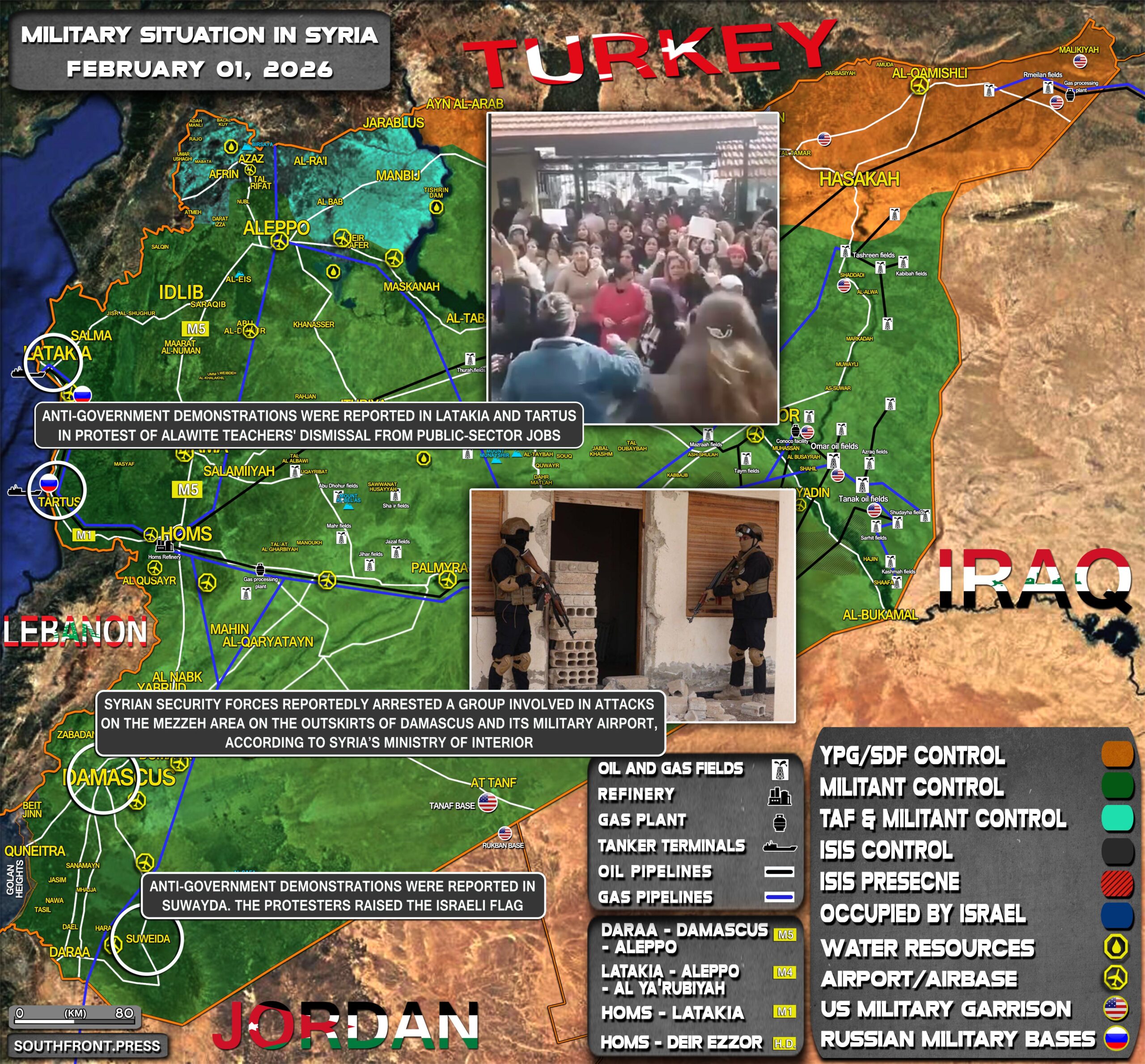 - Anti-government demonstrations were reported in Suwayda. The protesters raised the Israeli flag;