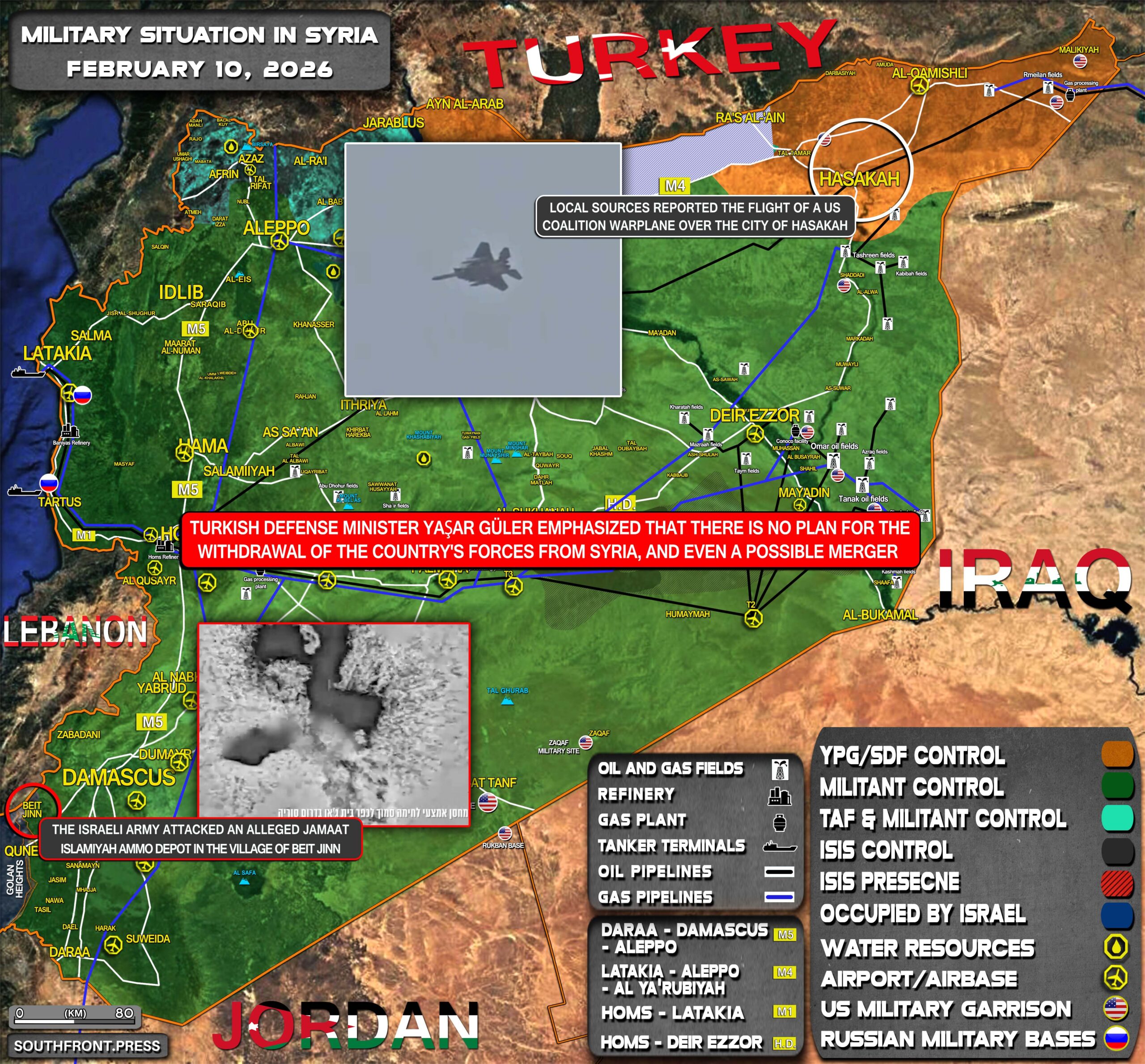 - Turkish Defense Minister Yaşar Güler emphasized that there is no plan for the withdrawal of the country’s forces from Syria, and even a possible merger;