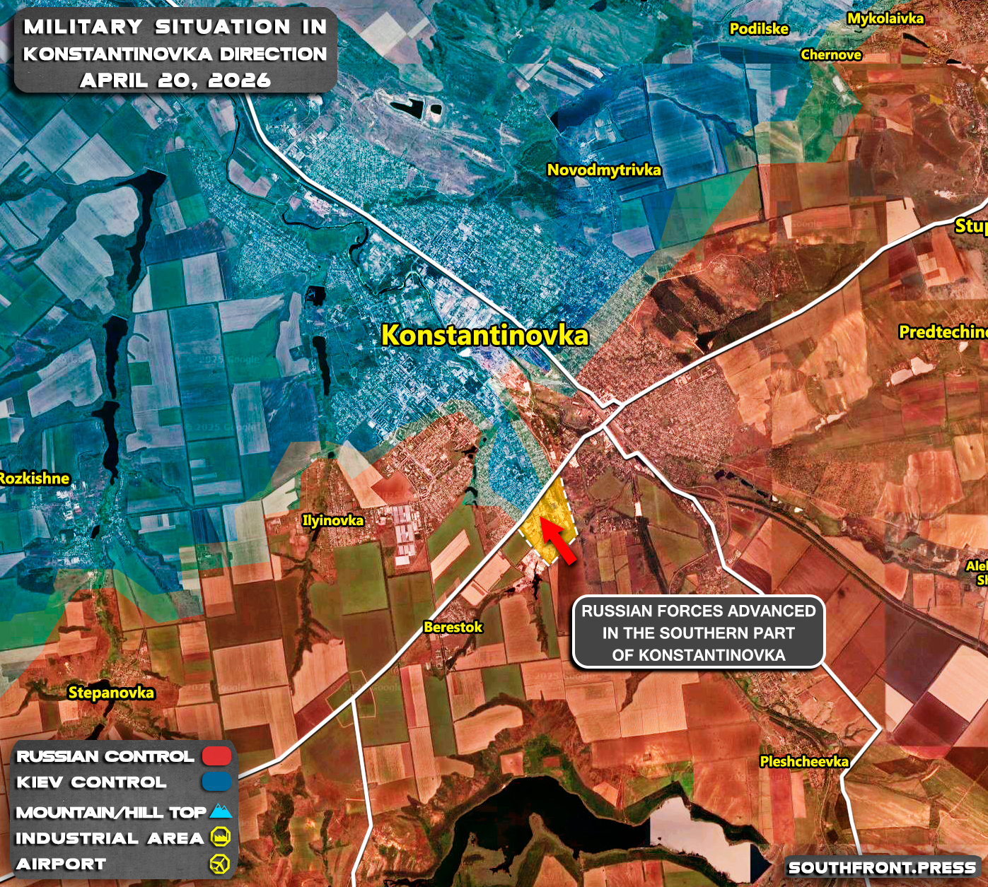 - Russian forces advanced in the southern part of Konstantinovka.