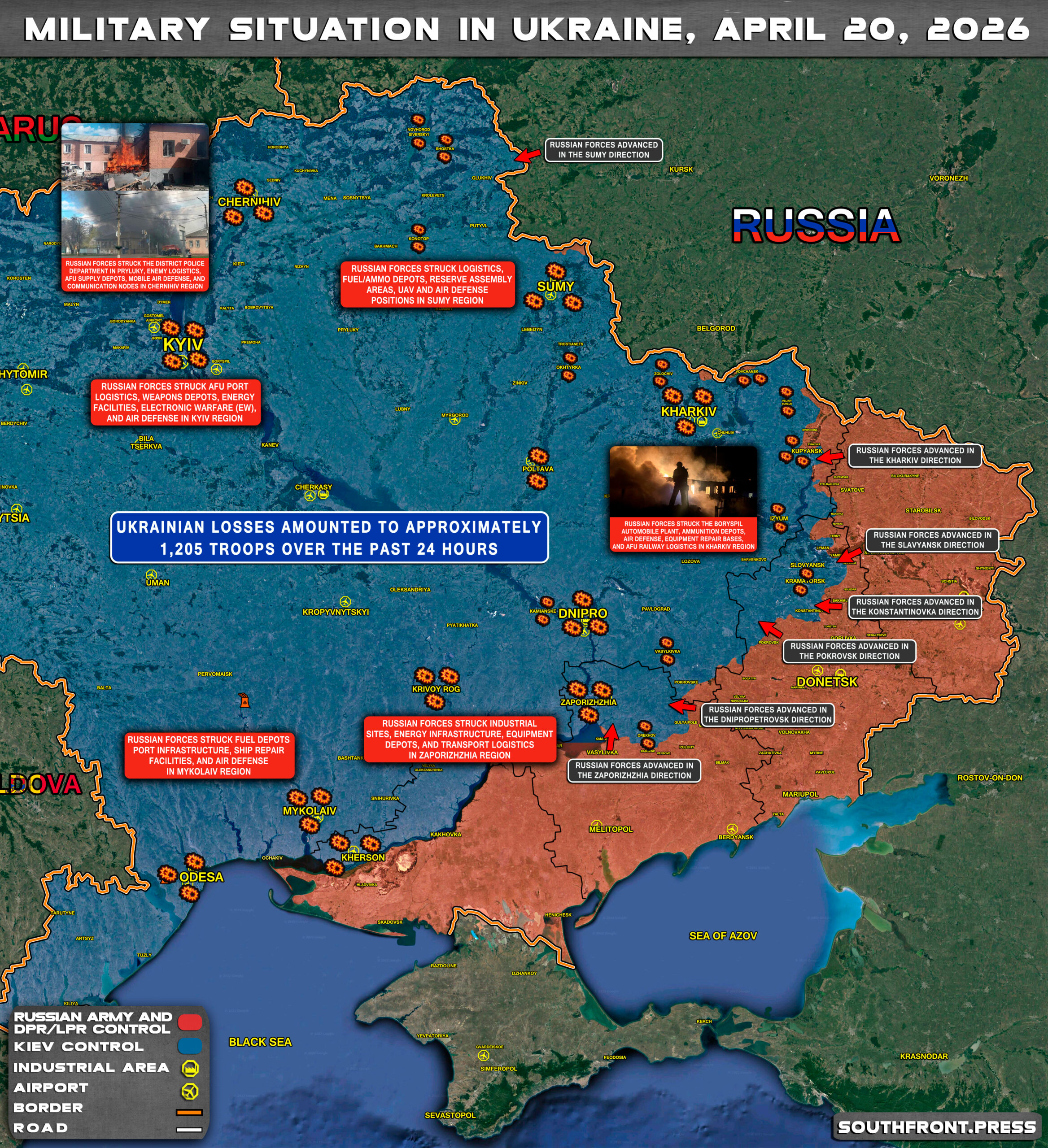 - Ukrainian losses amounted to approximately 1,205 troops over the past 24 hours.