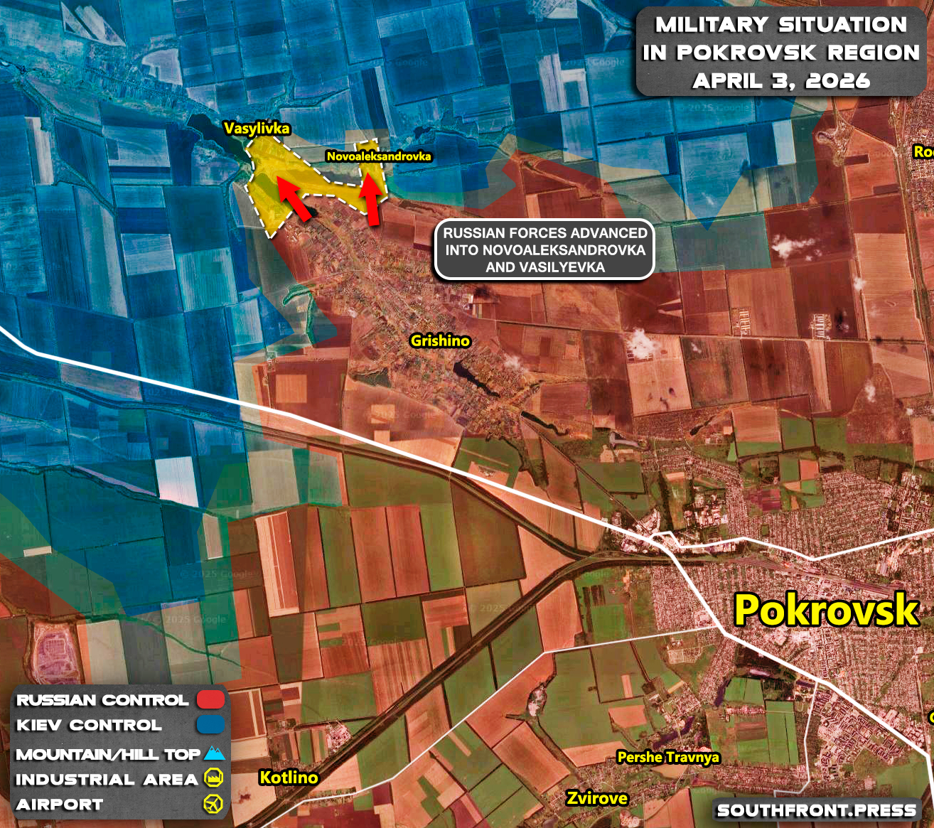 - Russian forces advanced into Novoaleksandrovka and Vasilyevka.
