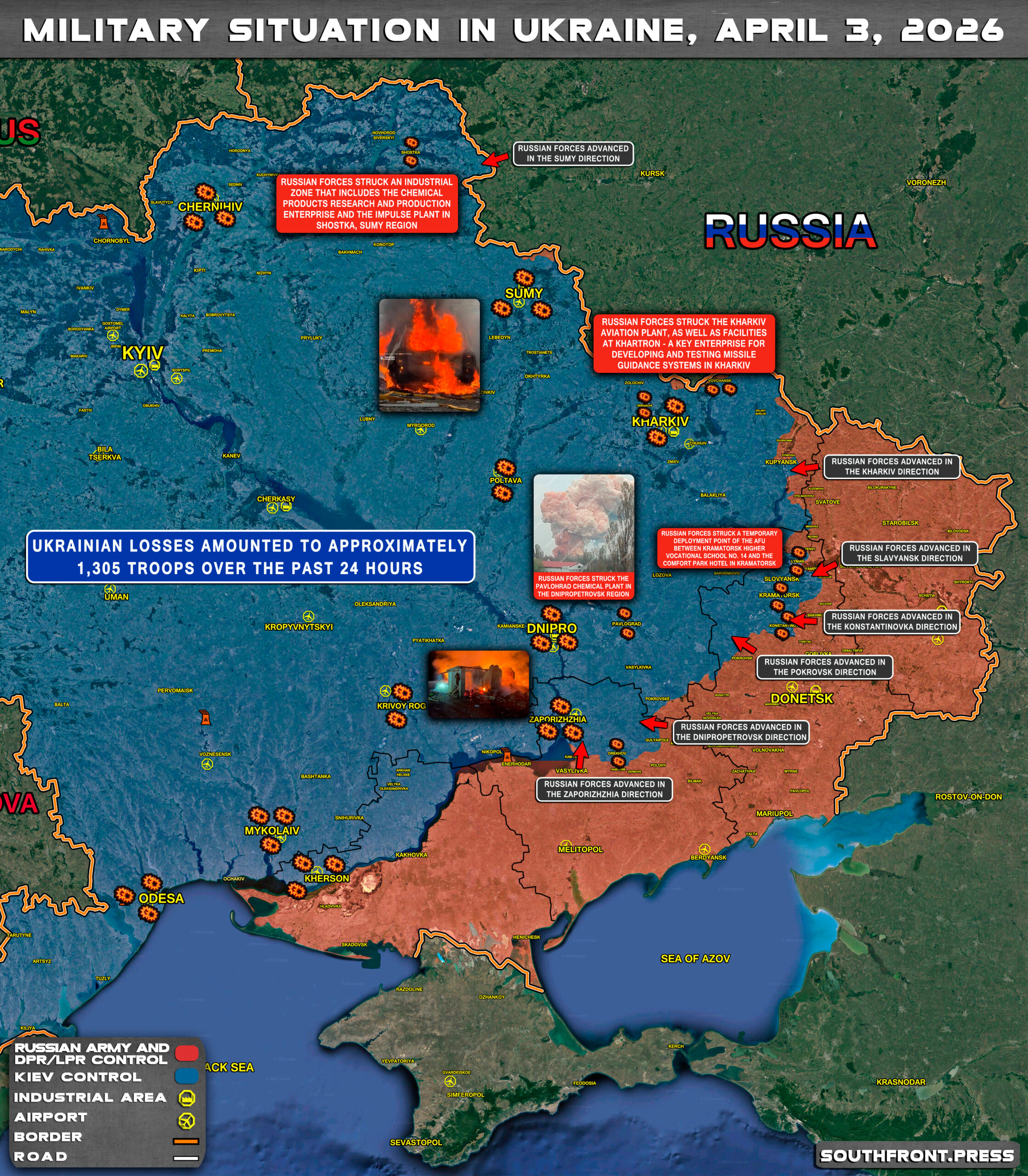 - Russian forces struck an industrial zone that includes the Chemical Products Research and Production Enterprise and the Impulse plant in Shostka, Sumy region;