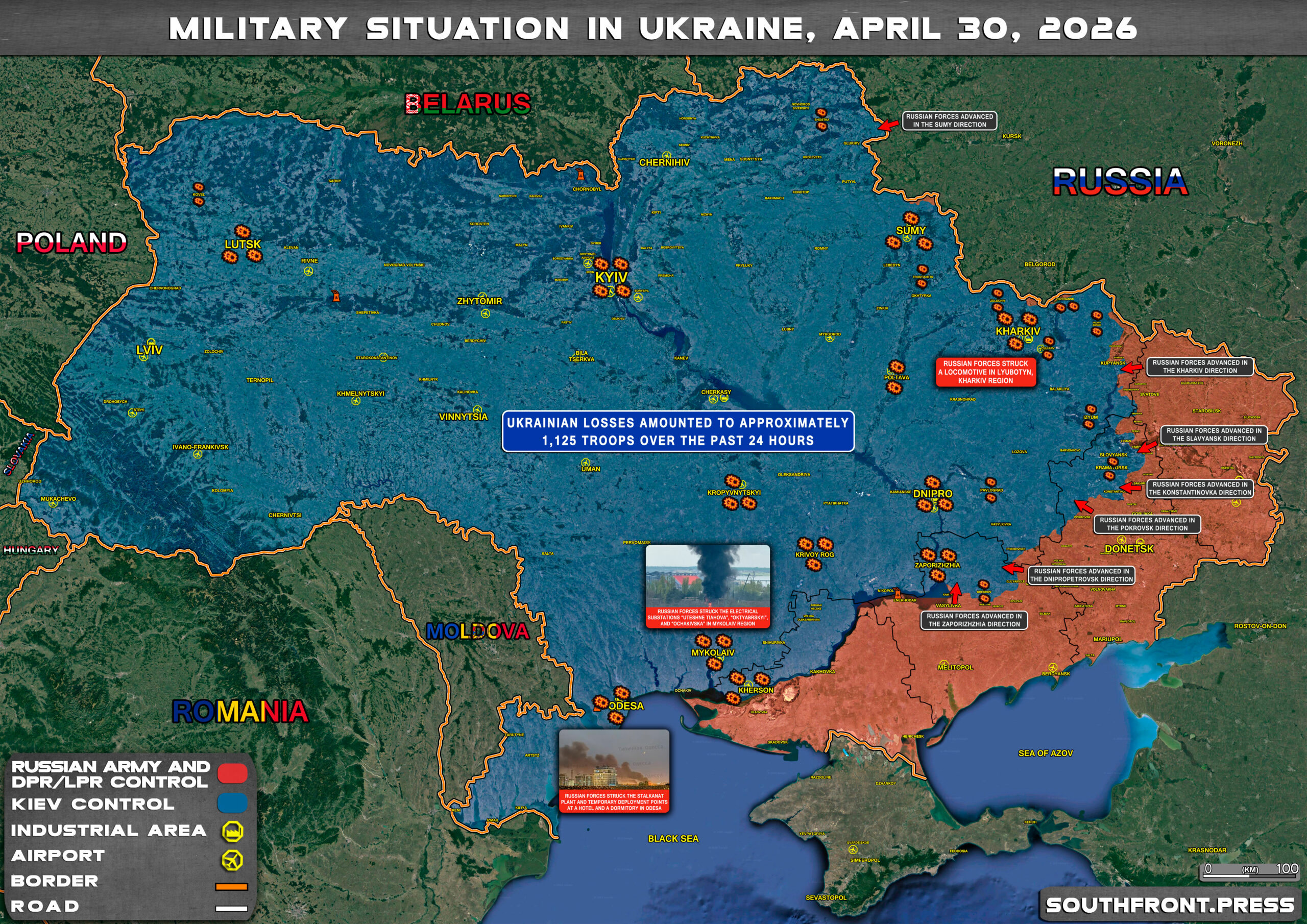 - Ukrainian losses amounted to approximately 1,125 troops over the past 24 hours.