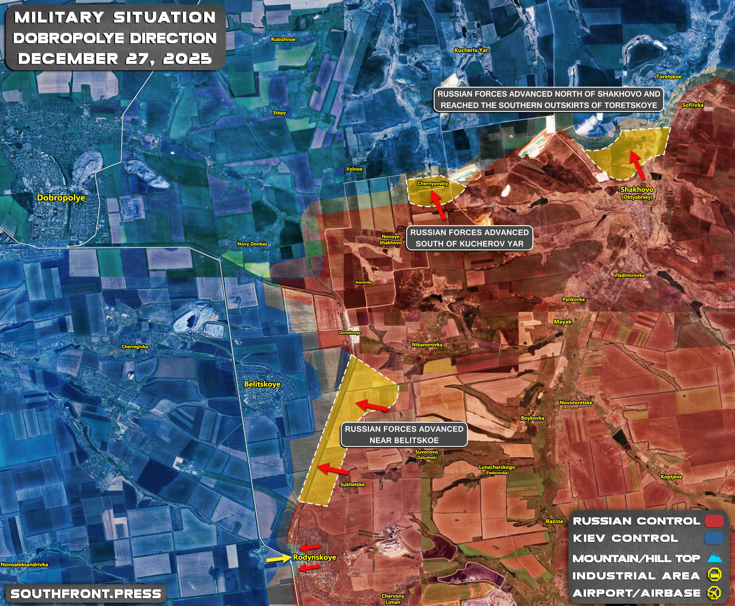 - Russian forces advanced north of Shakhovo and reached the southern outskirts of Toretskoye.
