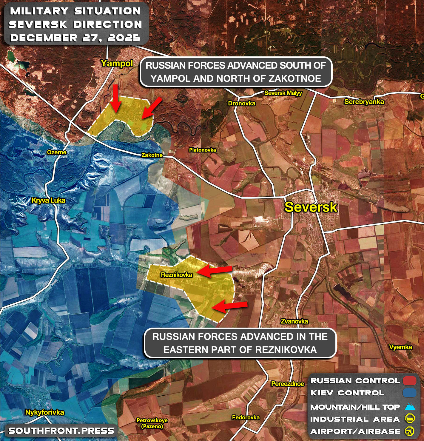 - Russian forces advanced south of Yampol and north of Zakotnoe;