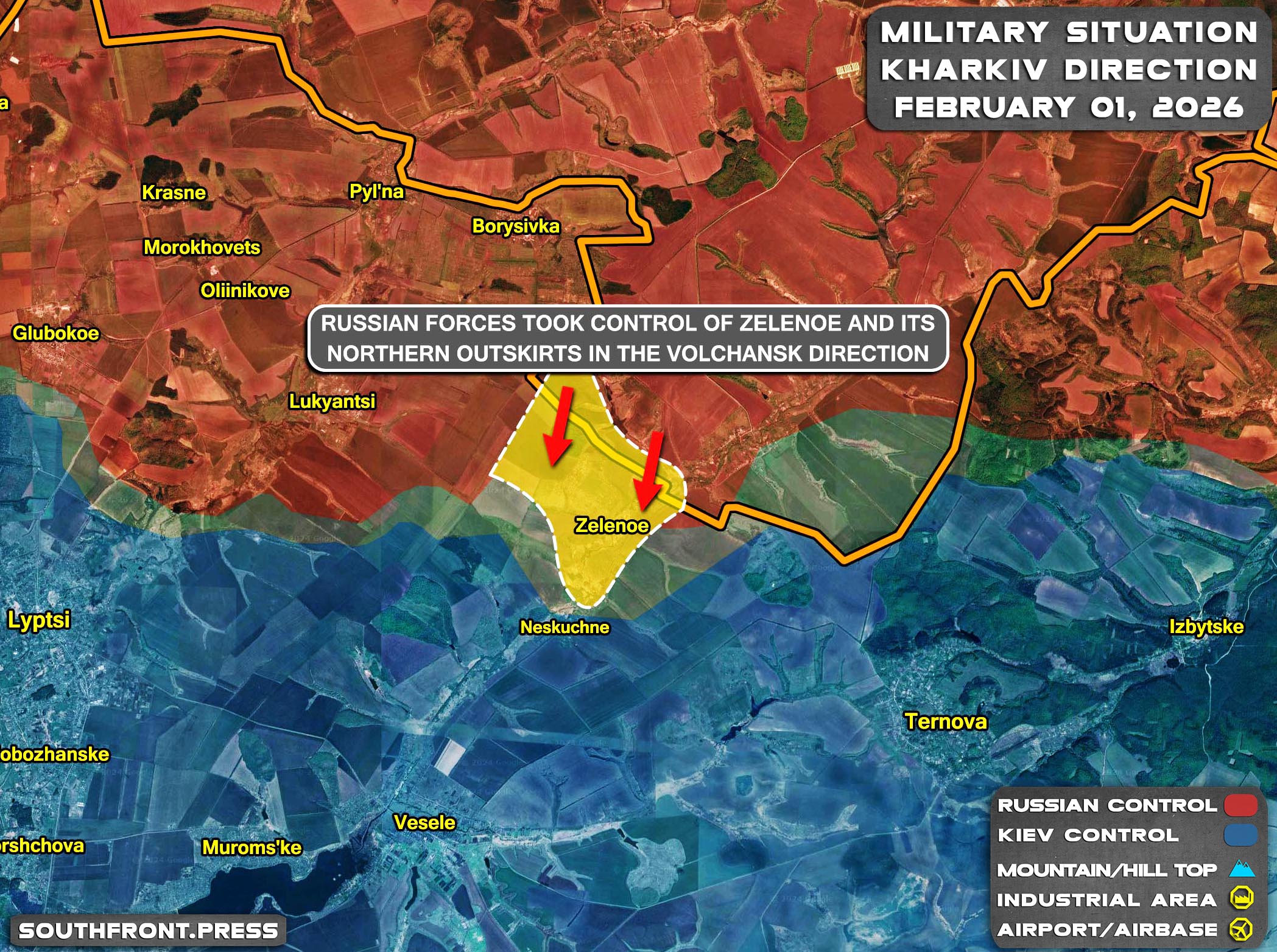 - Russian forces took control of Zelenoe and its northern outskirts in the Volchansk direction.