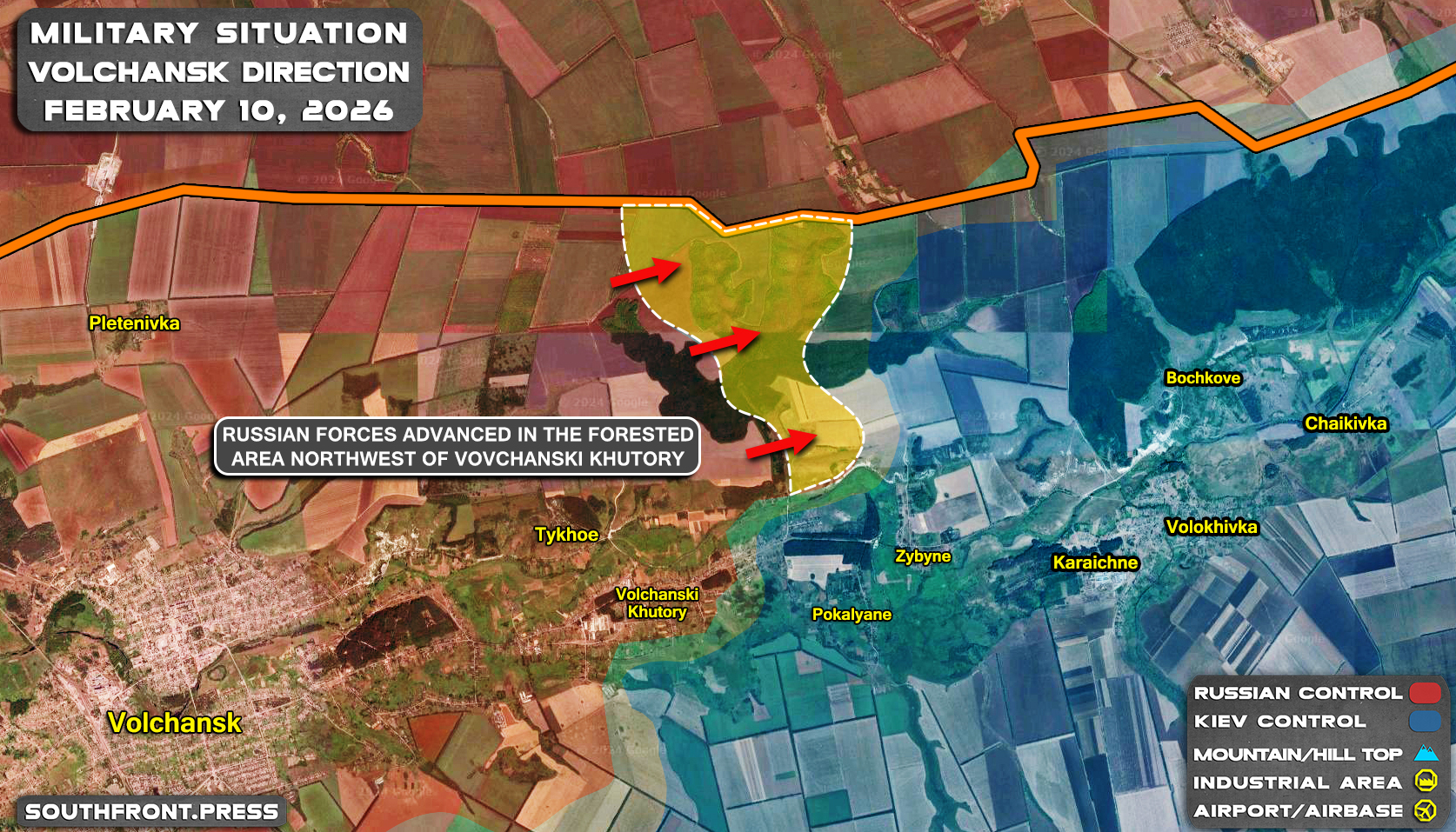 - Russian forces advanced in the forested area northwest of Vovchanski Khutory.