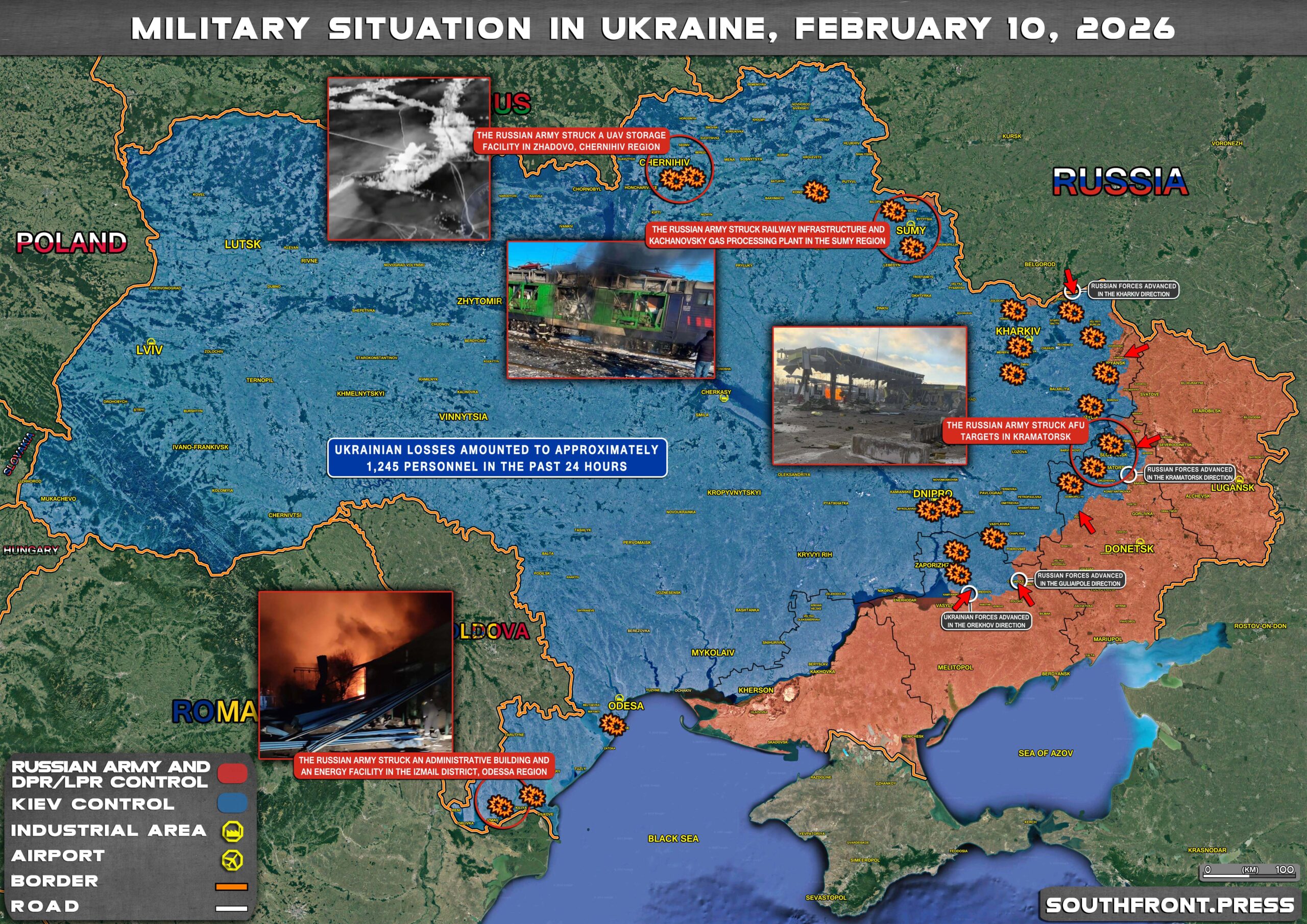 - The Russian army struck railway infrastructure and the Kachanovsky gas processing plant in the Sumy region;