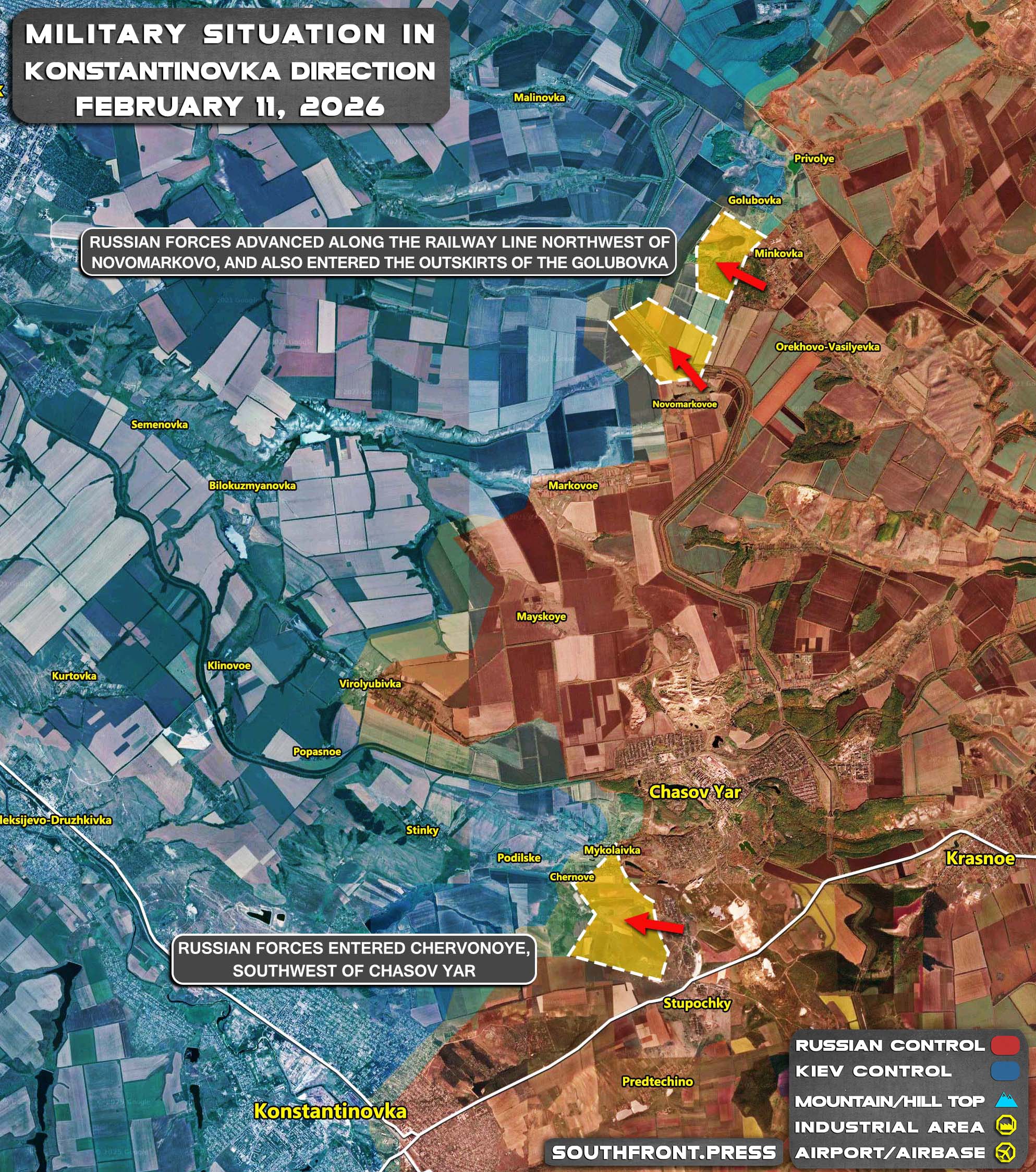 - Russian forces advanced along the railway line northwest of Novomarkovo, and also entered the outskirts of the Golubovka;