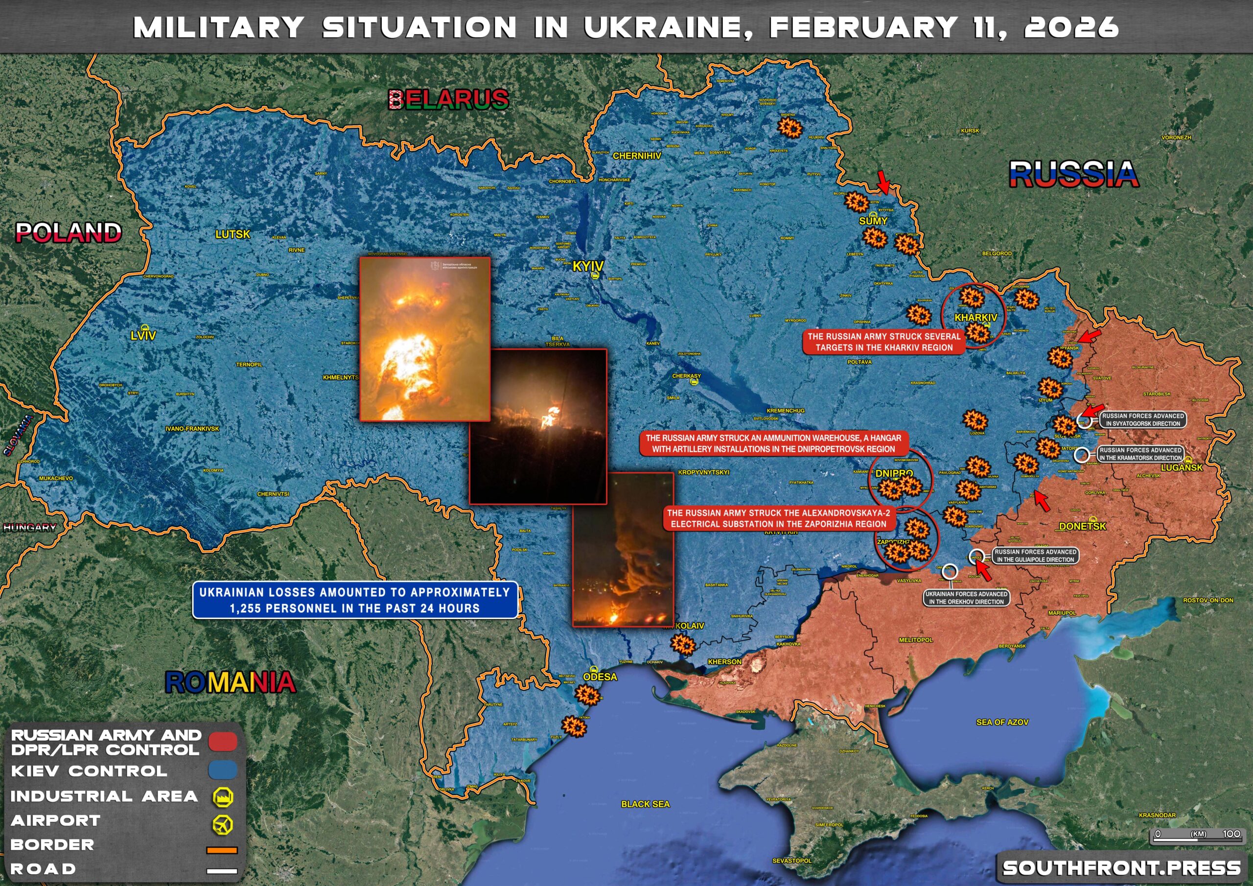 - The Russian army struck the Alexandrovskaya-2 electrical substation in the Zaporizhia region;