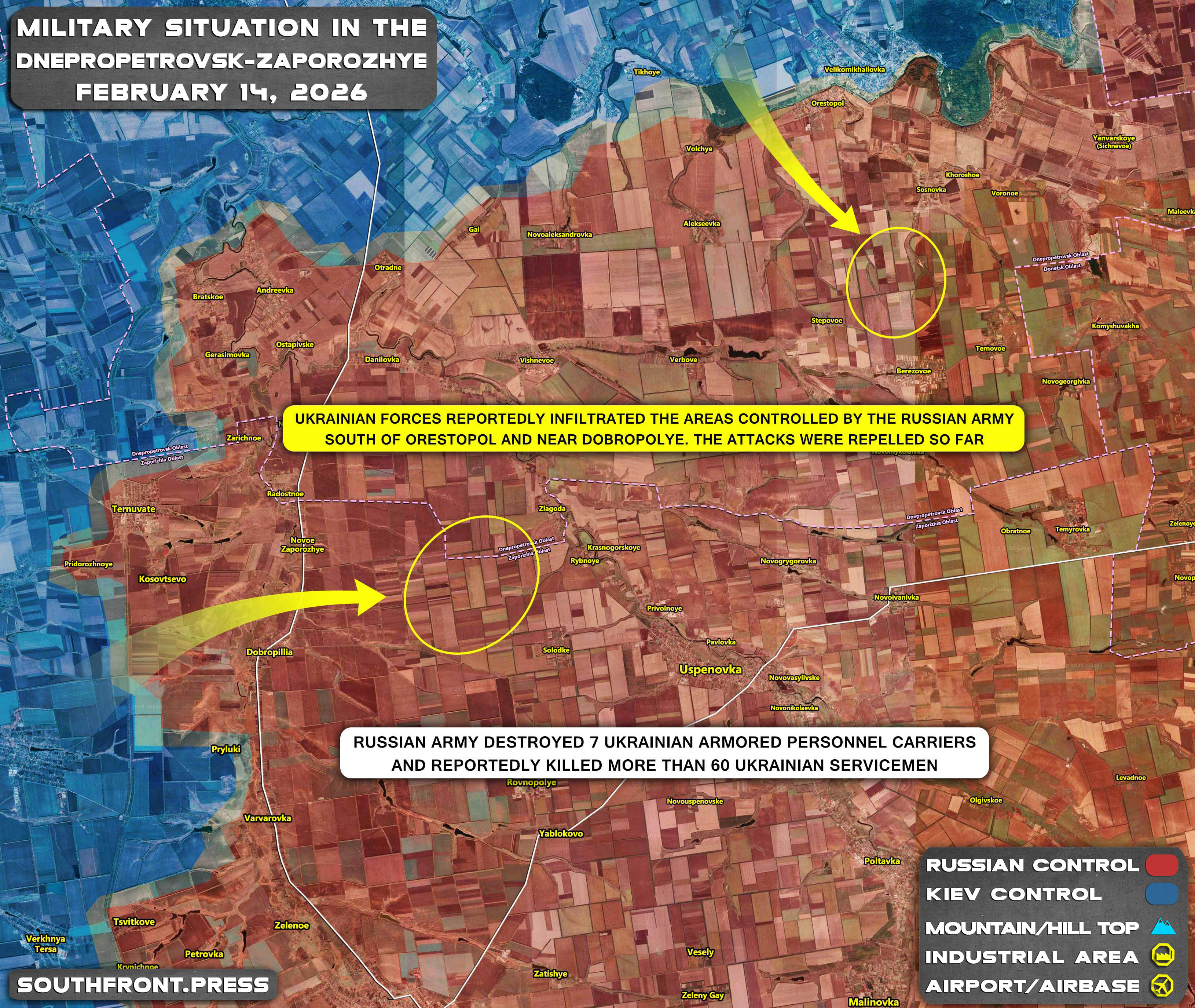 - Ukrainian forces reportedly infiltrated the areas controlled by the Russian army south of Orestopol and near Dobropolye. The attacks were repelled so far;