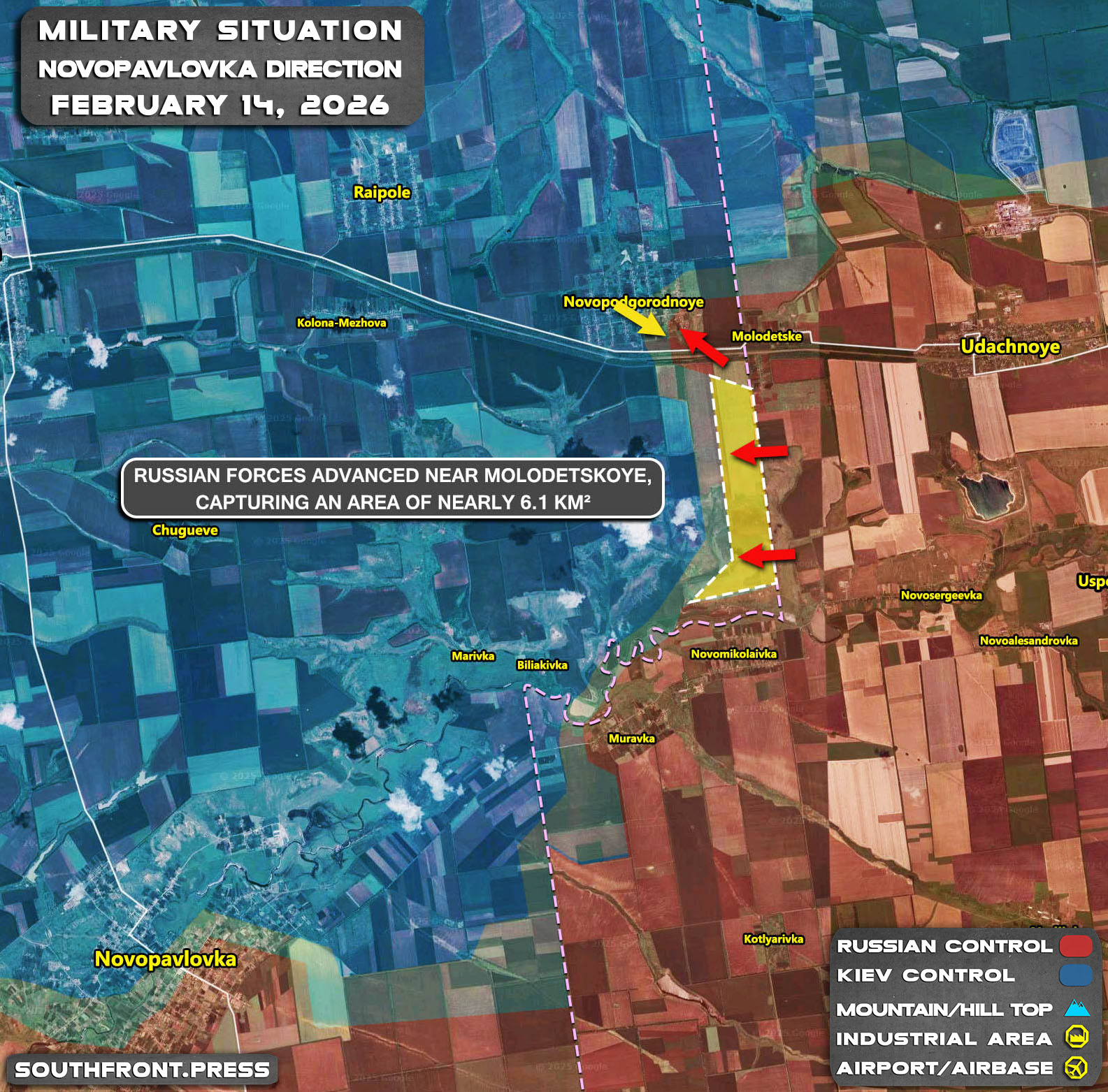 - Russian forces advanced near Molodetskoye, capturing an area of nearly 6.1 km².