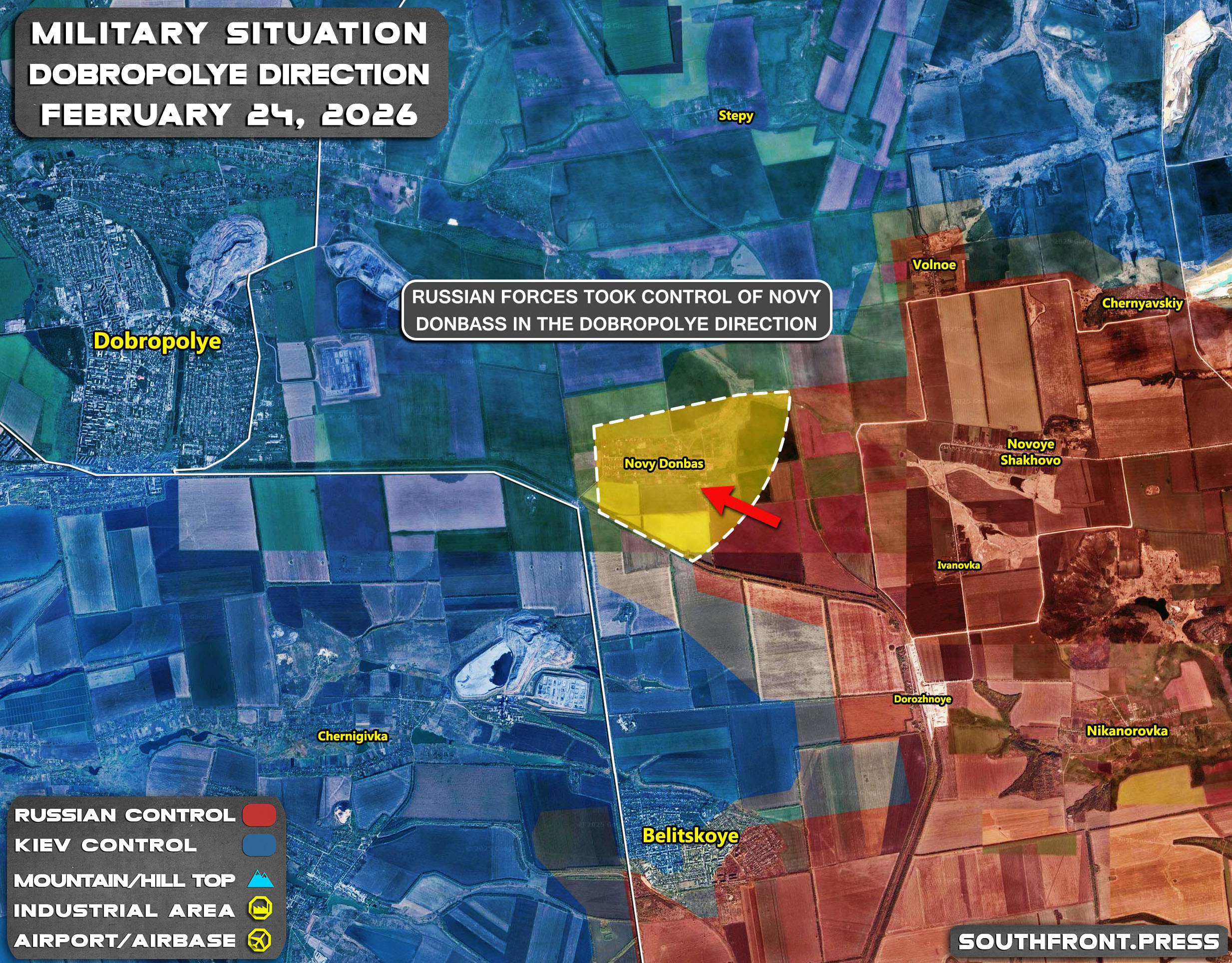 - Russian forces took control of Novy Donbass in the Dobropolye direction.