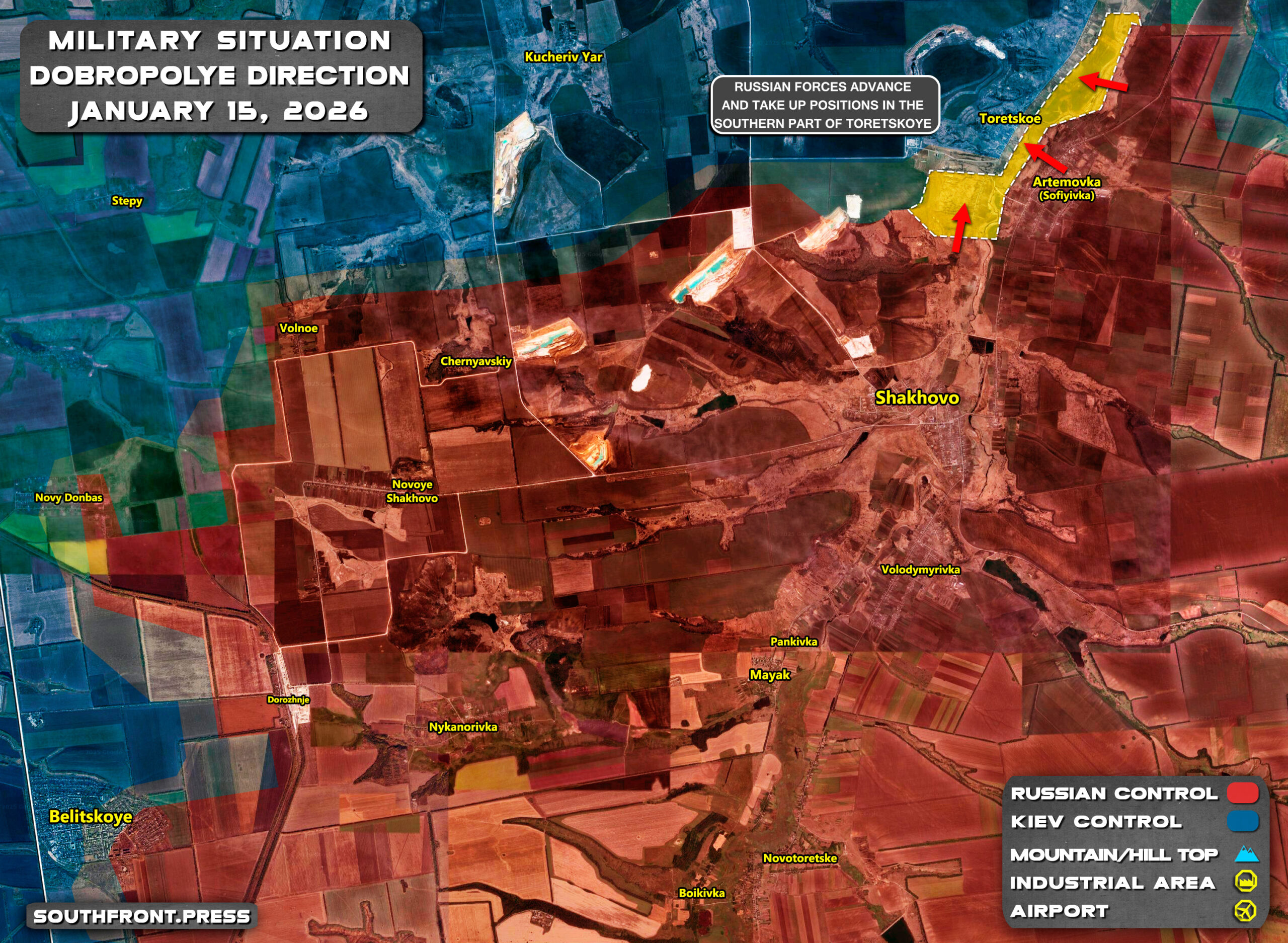 - Russian forces advance and take up positions in the southern part of Toretskoye.