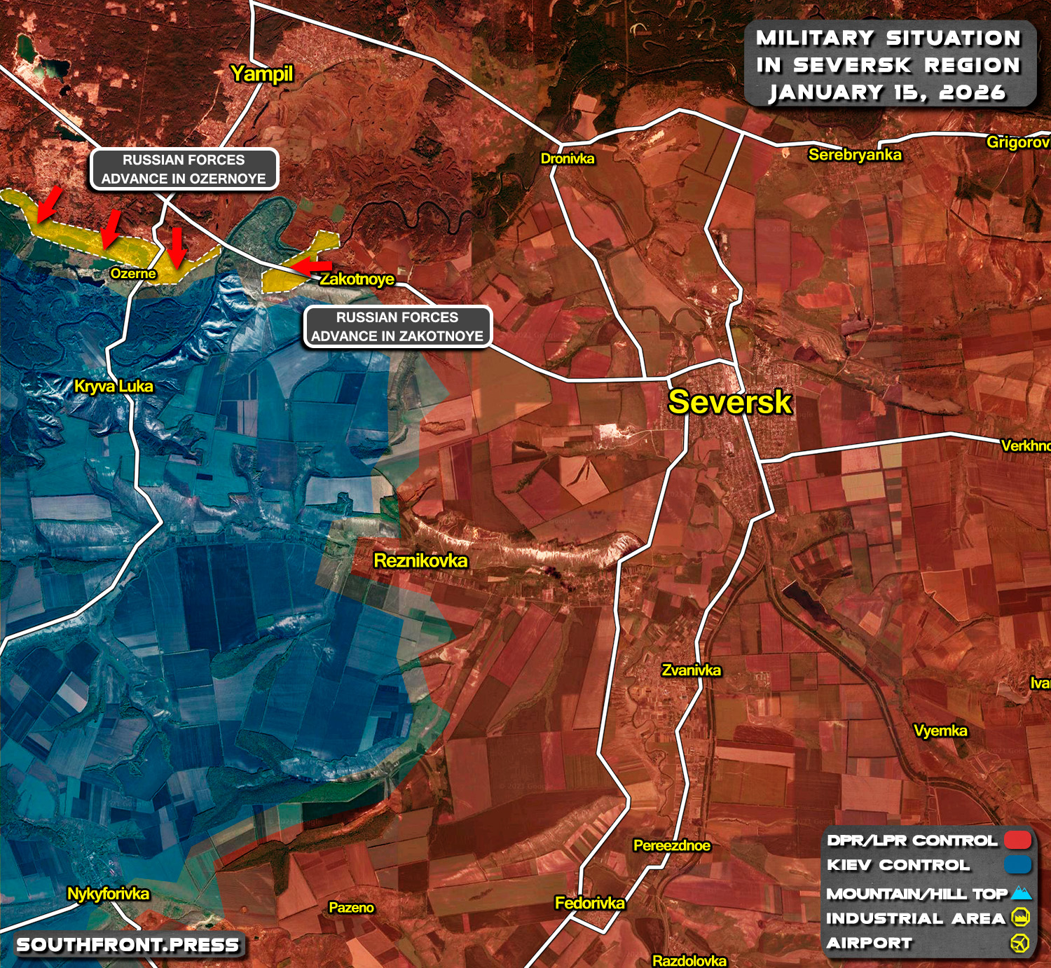 - Russian forces advance in Zakotnoye;