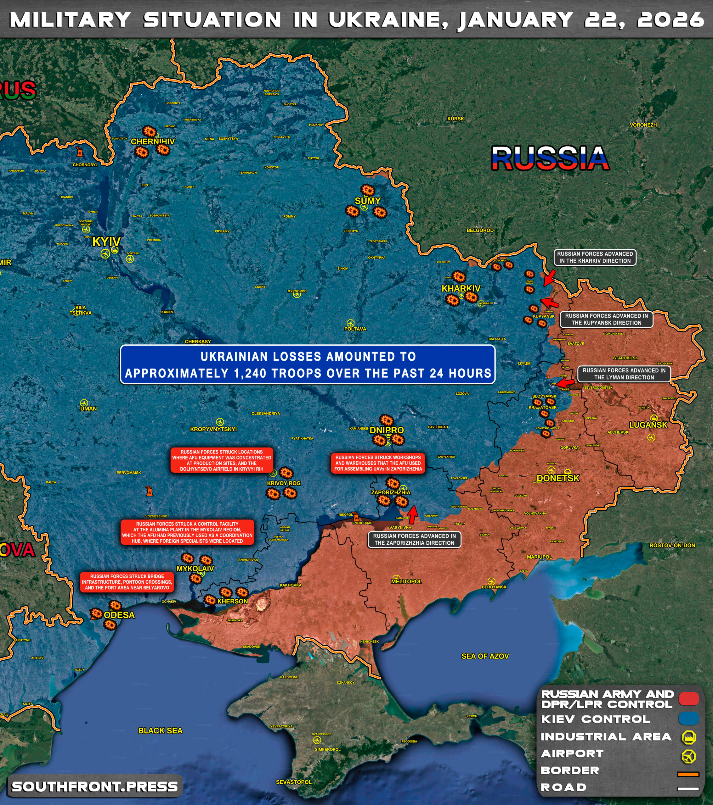 - Ukrainian losses amounted to approximately 1,240 troops over the past 24 hours.