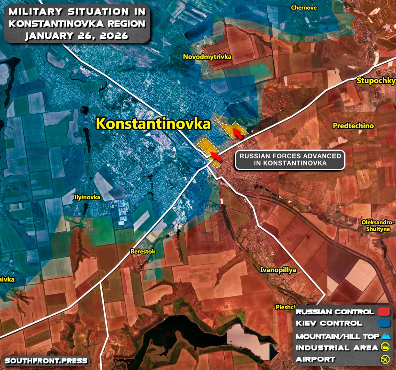 - Russian forces advanced in Konstantinovka.