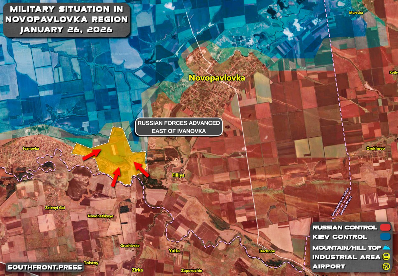 - Russian forces advanced east of Ivanovka.