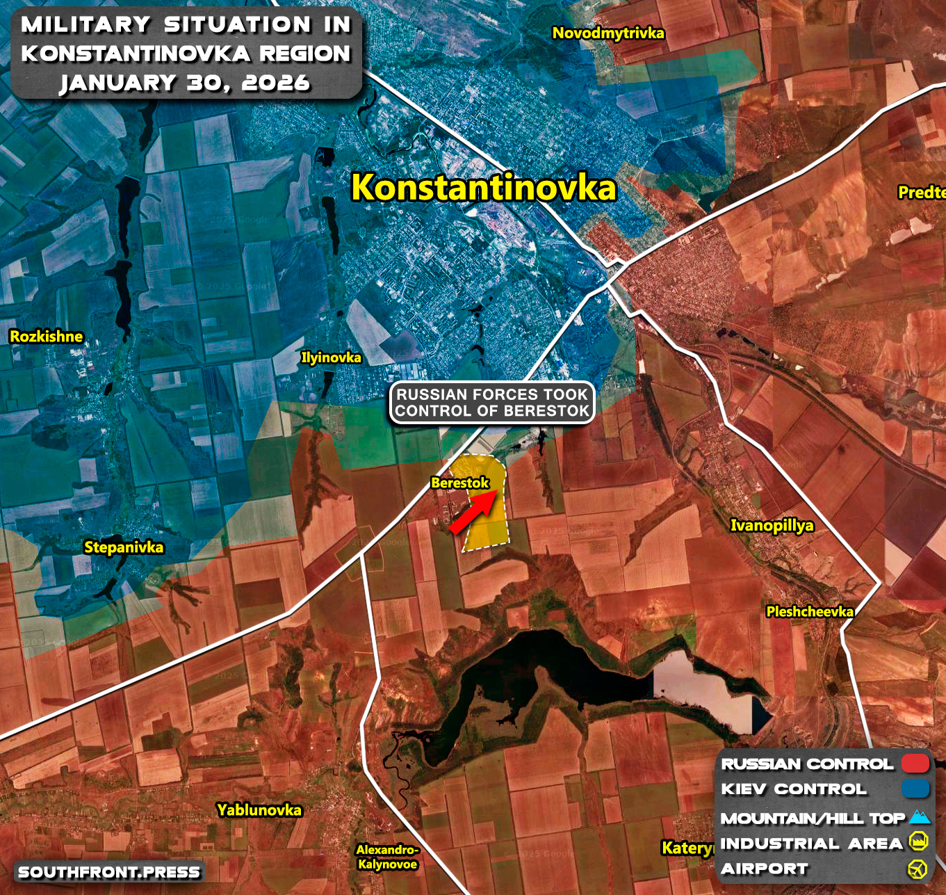 - Russian forces took control of Berestok in the Konstantinovka direction;