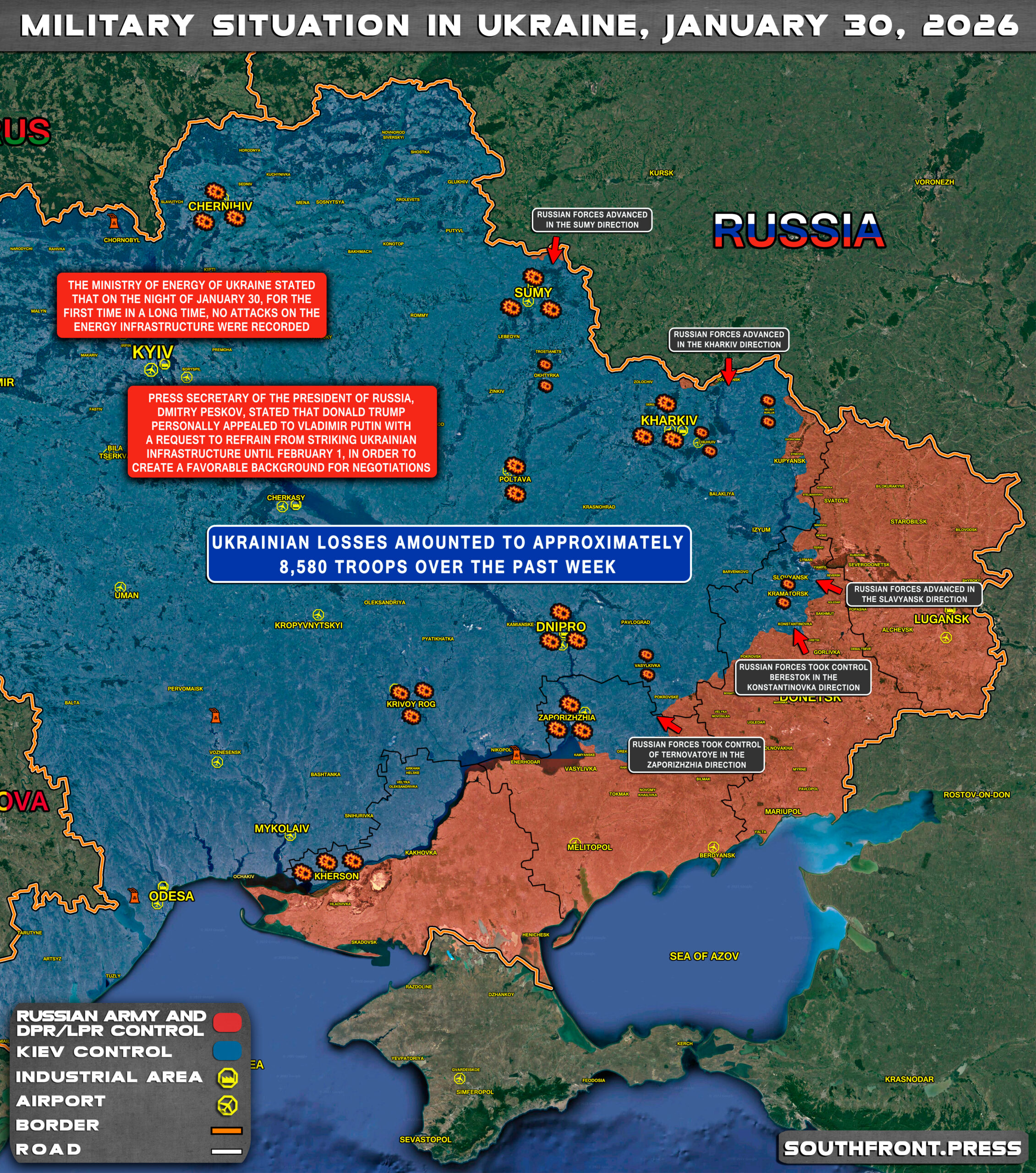- The Ministry of Energy of Ukraine stated that on the night of January 30, for the first time in a long time, no attacks on the energy infrastructure were recorded;