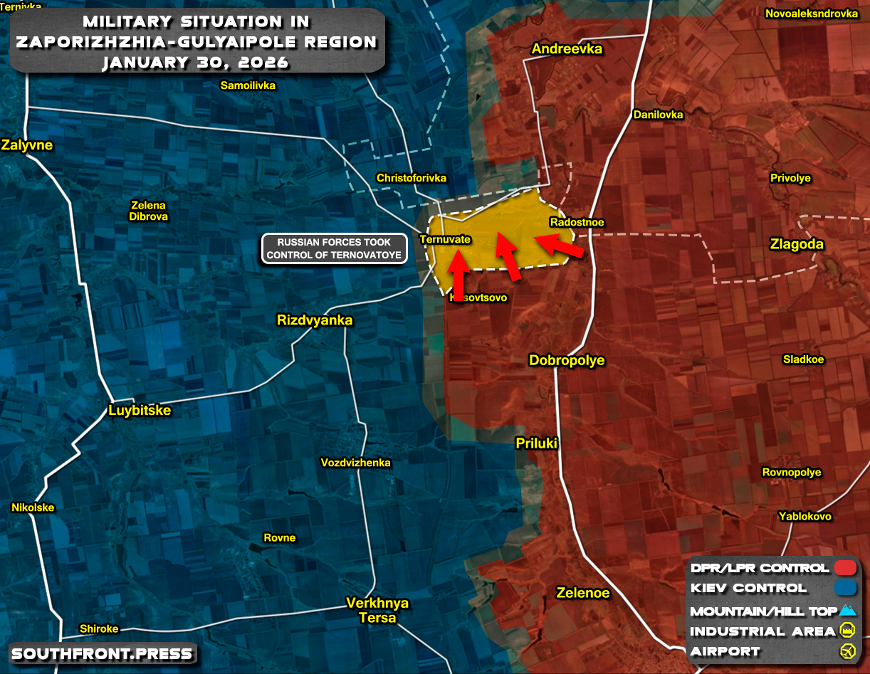 - Russian forces took control of Ternovatoye in the Zaporizhzhia direction;