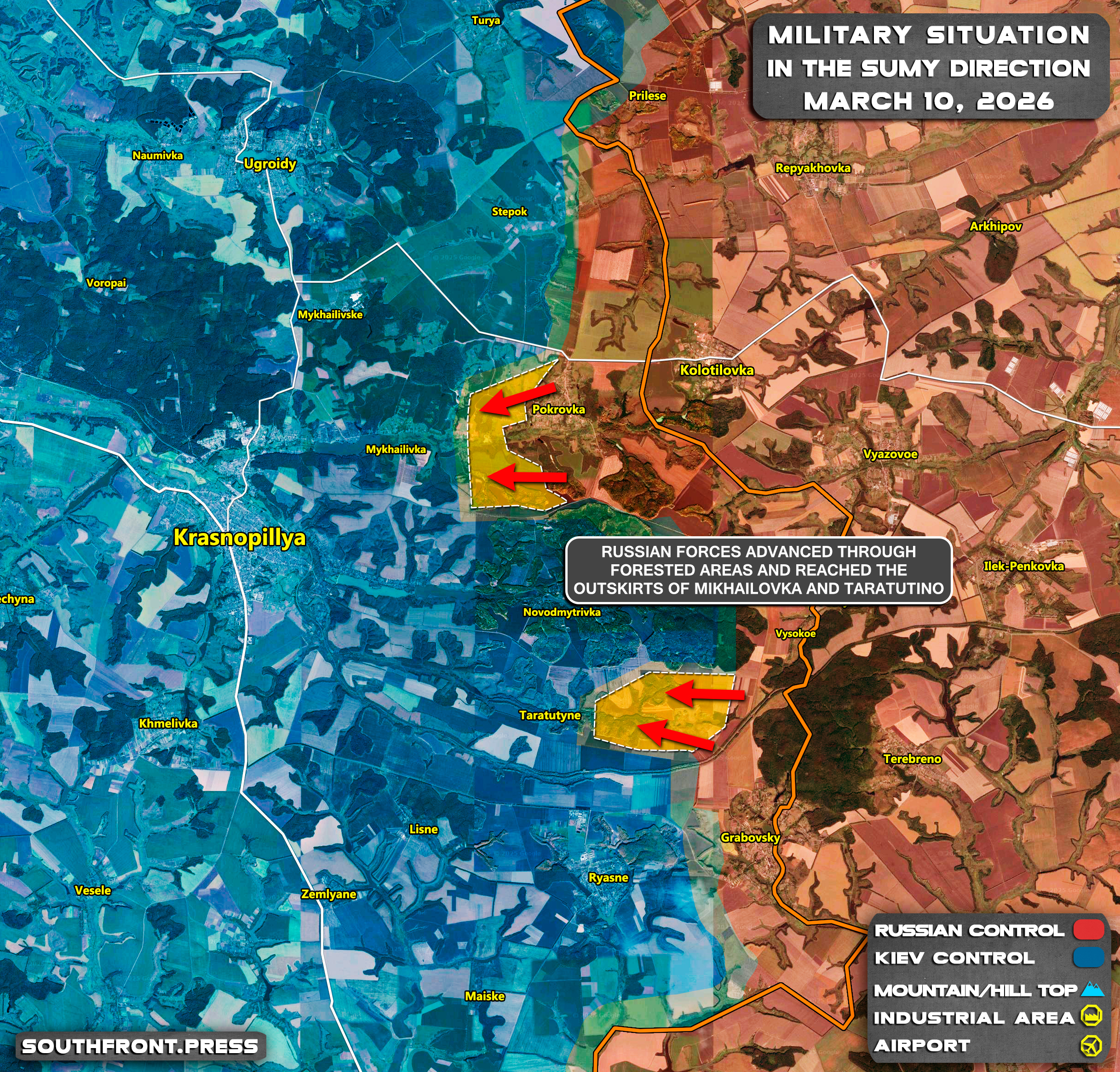 - Russian forces advanced through forested areas and reached the outskirts of Mikhailovka and Taratutino.