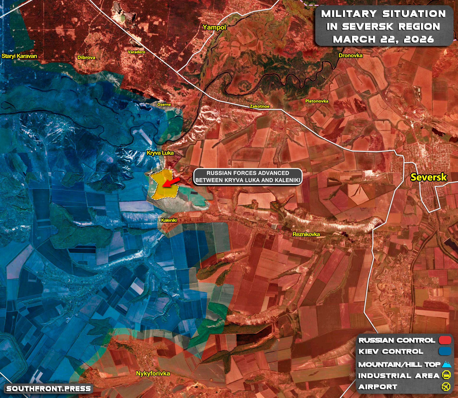 Russian forces advanced between Kryva Luka and Kaleniki.