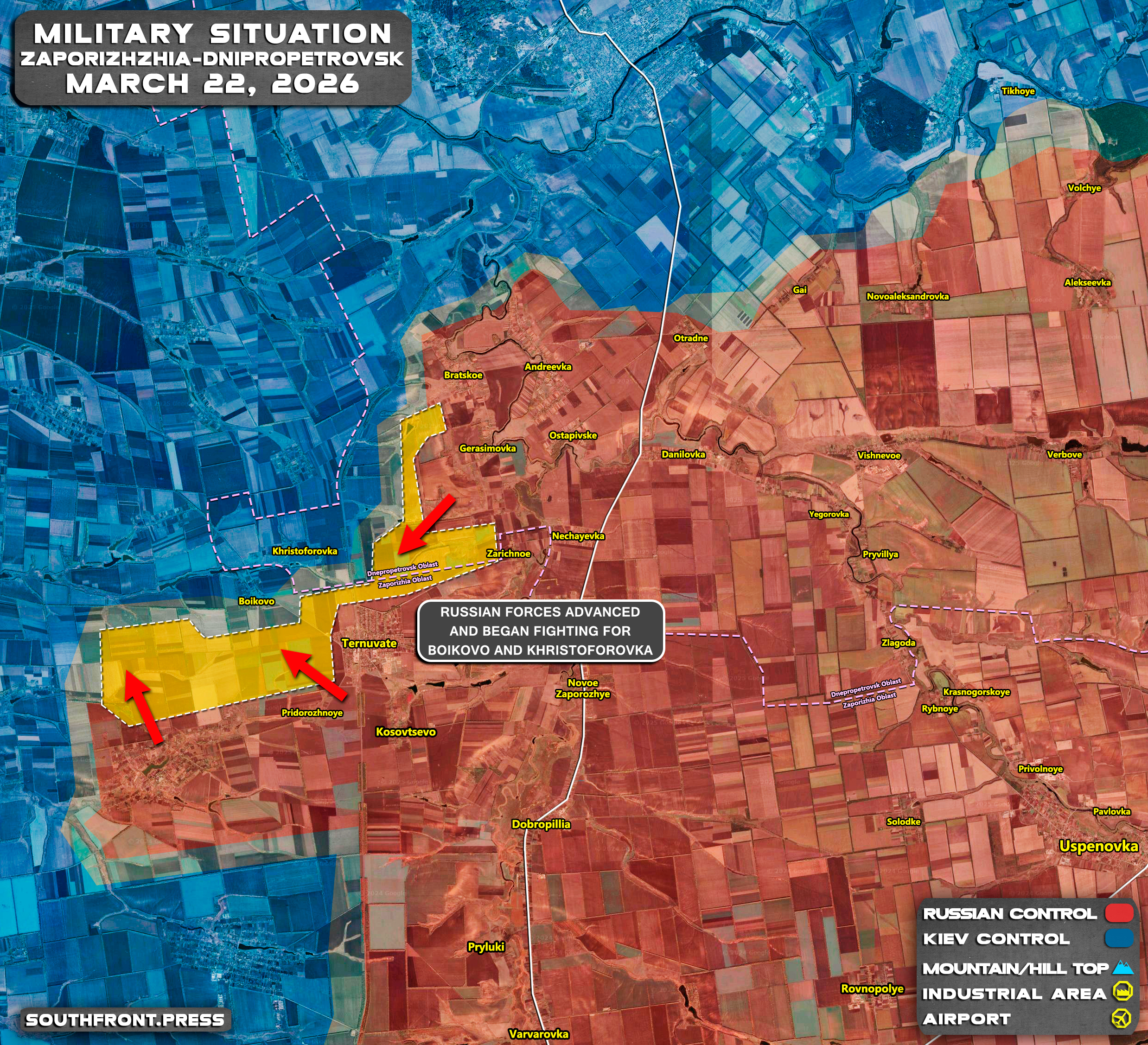 - Russian forces advanced and began fighting for Boikovo and Khristoforovka.