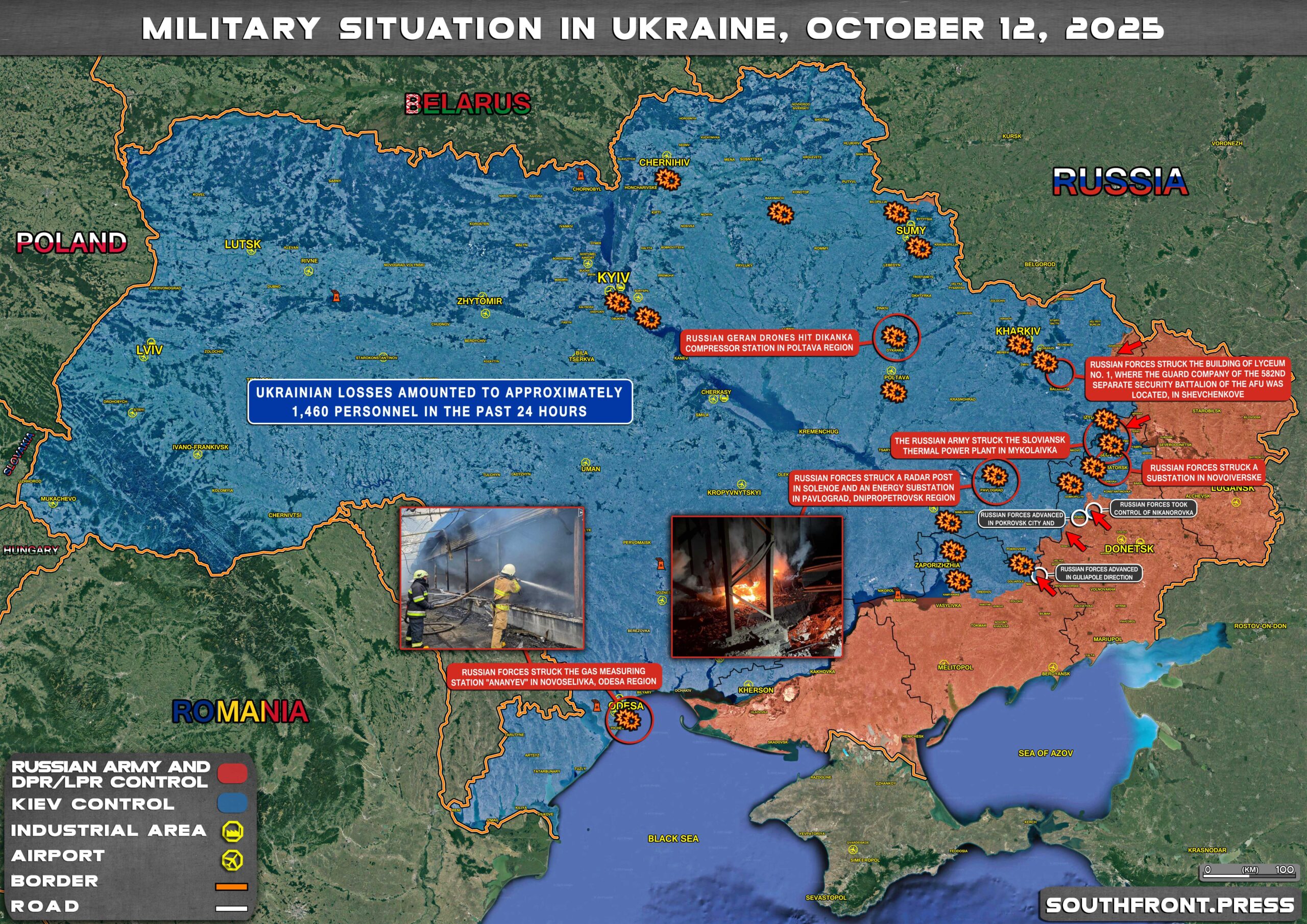 - Russian strikes destroyed targets in Sumy, Kyiv, Chernihiv, Zaporizhzhia, Dnipropetrovsk, Kharkiv, Poltava, Odesa, and the DPR regions;