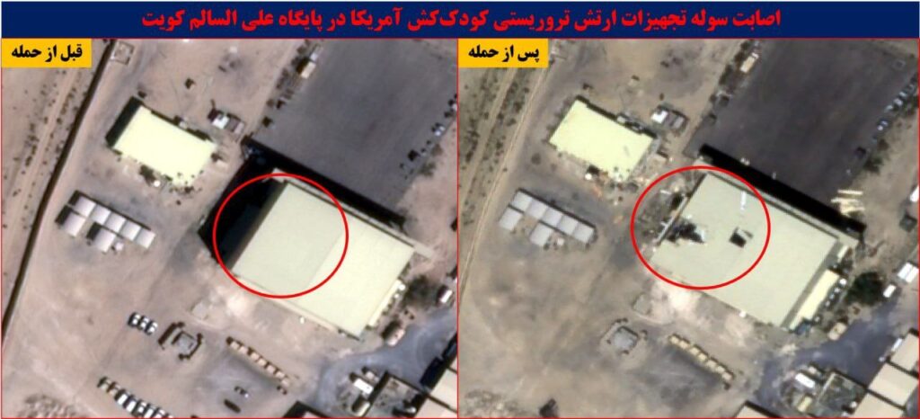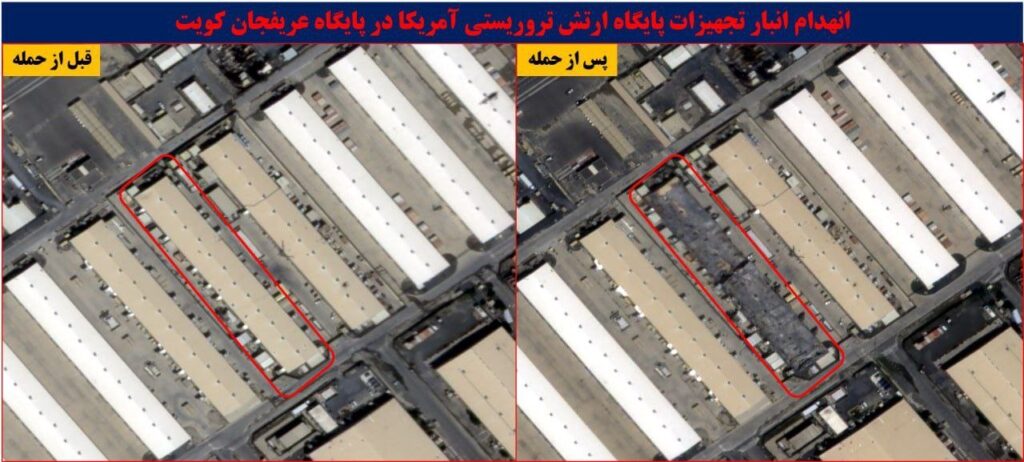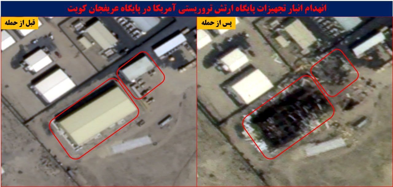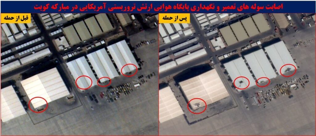 In Kuwait, the newly-released satellite images show some serious damage in Camp Arifjan, a major base located south of the capital, Kuwait City, serving as a key logistics hub for U.S. forces, including Army, Navy, Air Force, and Marines. Three large hangers were wiped out there.
