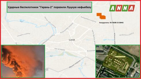 At the other end of the country, in western Ukraine, Geran-2 attack UAVs struck the Lutsk oil depot. A column of smoke and fire data recorded by the FIRMS satellite service confirmed the successful hit.