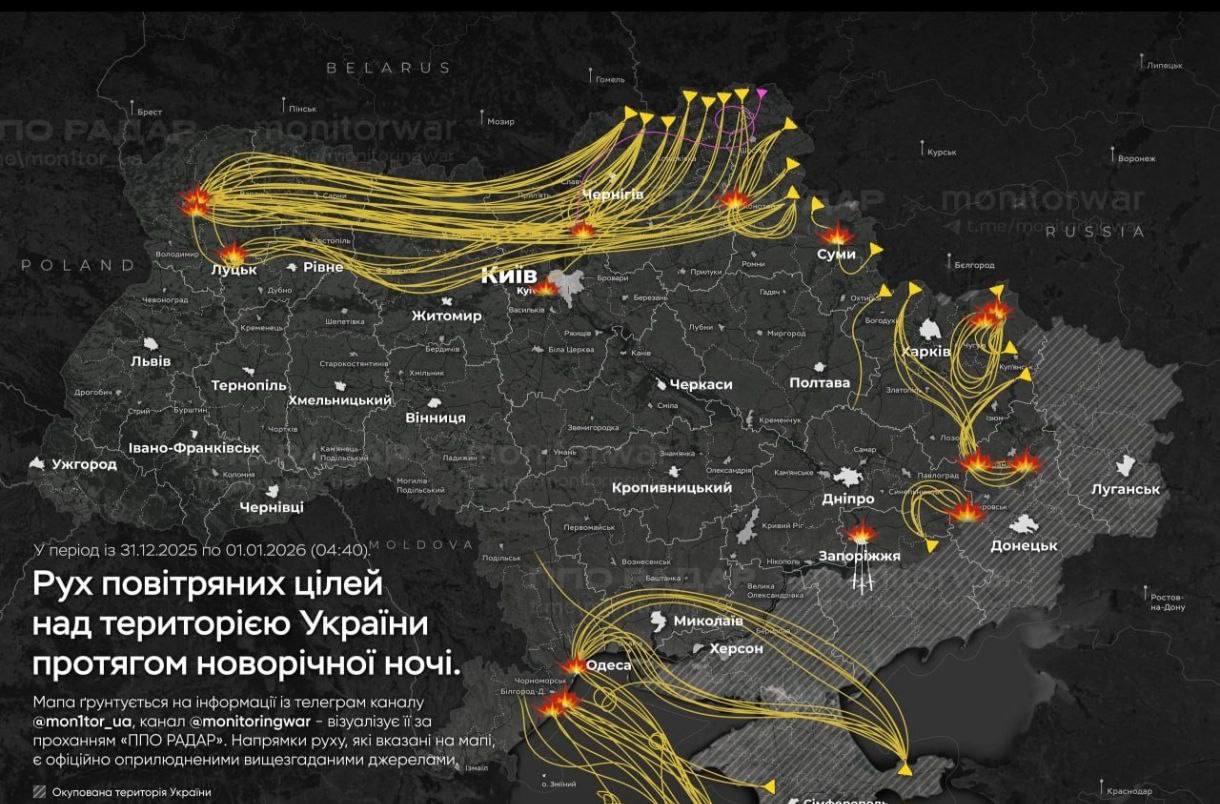 On the night of January 1, 2026, according to data from the Ukrainian Air Force, Russian forces deployed 205 attack unmanned aerial vehicles (UAVs), of which 176 were shot down/suppressed. One of the key damaged objects was a UAV pilot training center in the Progress settlement of the Chernihiv region. The Russian side stated that precisely from this site, fixed-wing drones are launched at Russian territory, and that the strike destroyed between 10 and 15 crews.