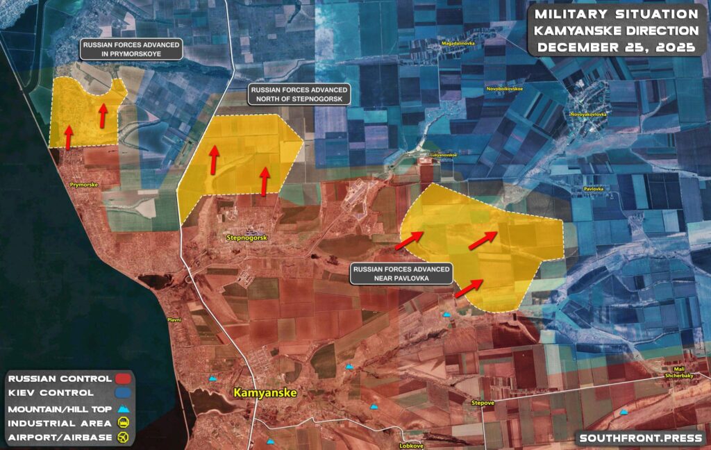 The troops also advanced to the east of the settlement, approaching Pavlovka. Meanwhile to the west along the Dnieper River, the troops expanded their control in the southern part of Prymorskoye. These developments could be a sign of a near Ukrainian collapse in this direction.