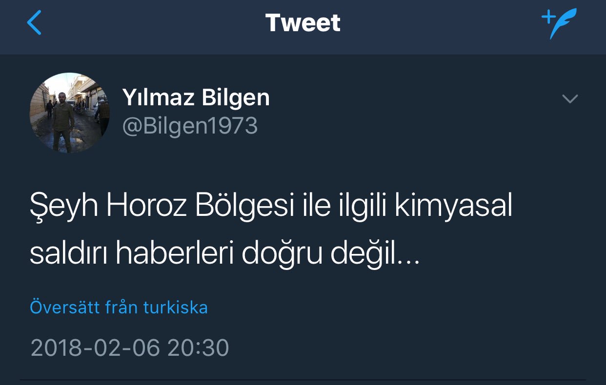 اصابة عناصر من قوات الجيش السوري الحر بعد استهدافهم من قبل ميليشيات PYD الارهابية بقذيفة تحوي غاز الكلور السام على جبهة الشيخ خروز شمال عفرين. pic.twitter.com/M5TKCJbTYY— عملية غصن الزيتون Zeytin Dalı Harekatı (@zeytindali_sy) 6 February 2018