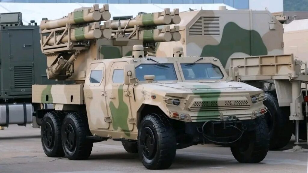 The system, which is based on the Dongfeng Mengshi 6×6 chassis, is equipped with a phased array radar, optical sensor, and eight missile launch tubes.