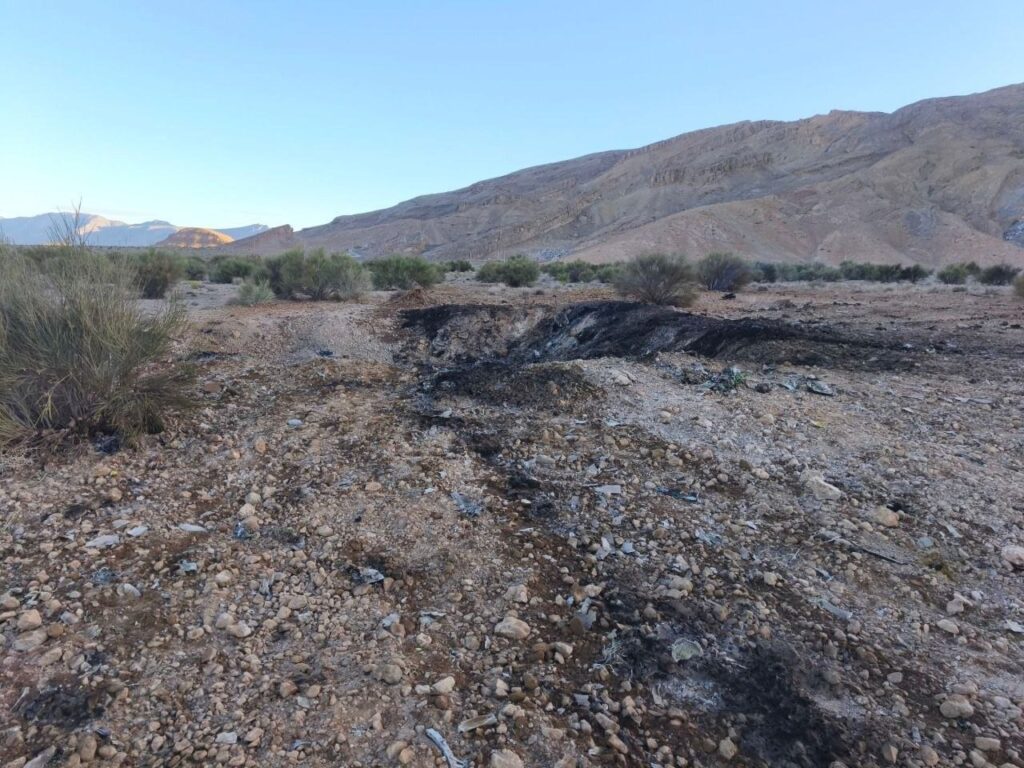 One photo also shows a large charred crater on the ground, possibly the result of a strike that targeted the wreckage when the fighter jet first crashed.