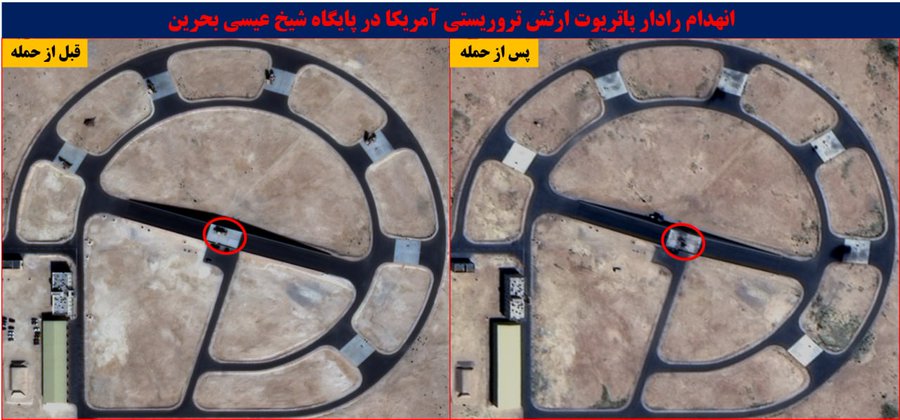 Iranian strikes hit an American-made American-made MIM-104 Patriot air defense system in southern Bahrain, and inflicted some serious damage on a key air base located nearby, according to satellite images shared by Iranian media on March 23.