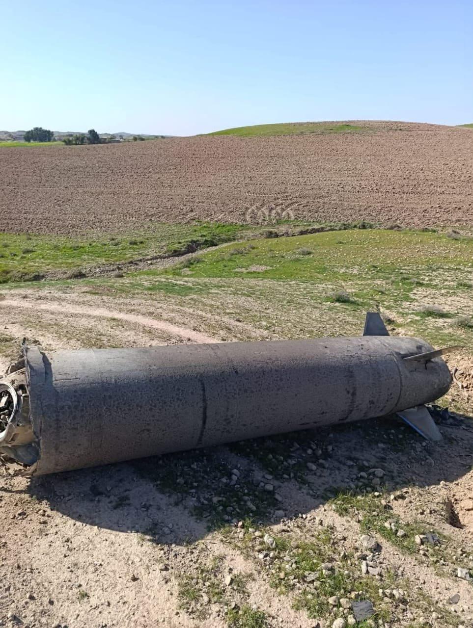 What appears to be the first stage of the missiles used in the attack are seen in the photos, which were taken at the district of al-Alam in the central Iraqi province of Saladin.