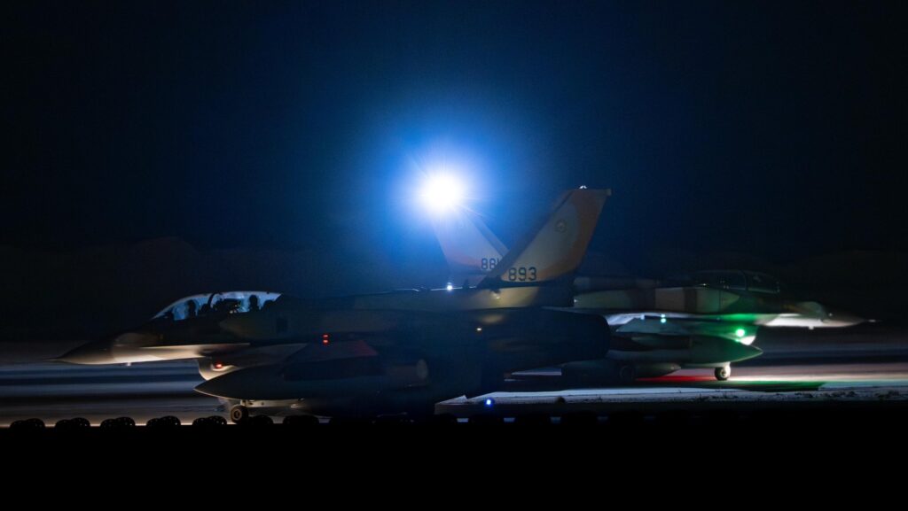 The Israeli Air Force on March 29 released a photo of F-16I Sufa fighter jets taking part in strikes on Iran, armed with what appears to be cluster bombs.