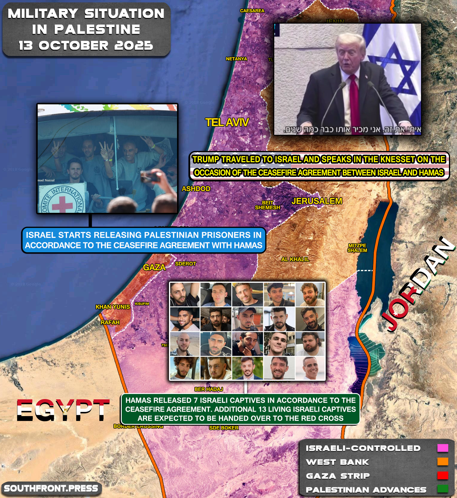 - Hamas released 7 Israeli captives in accordance to the ceasefire agreement. Additional 13 living Israeli captives are expected to be handed over to the Red Cross;