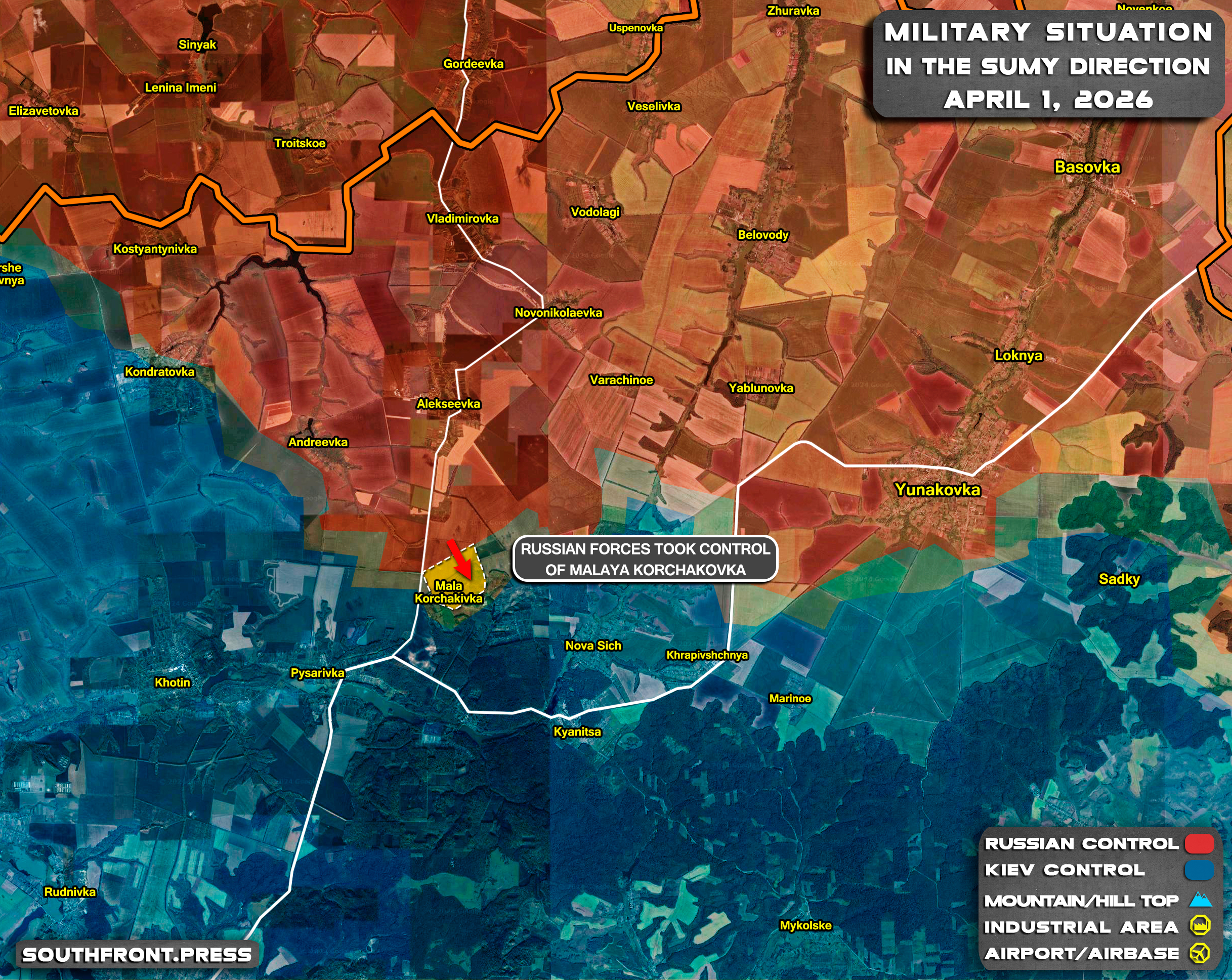 - Russian forces took control of Malaya Korchakovka.