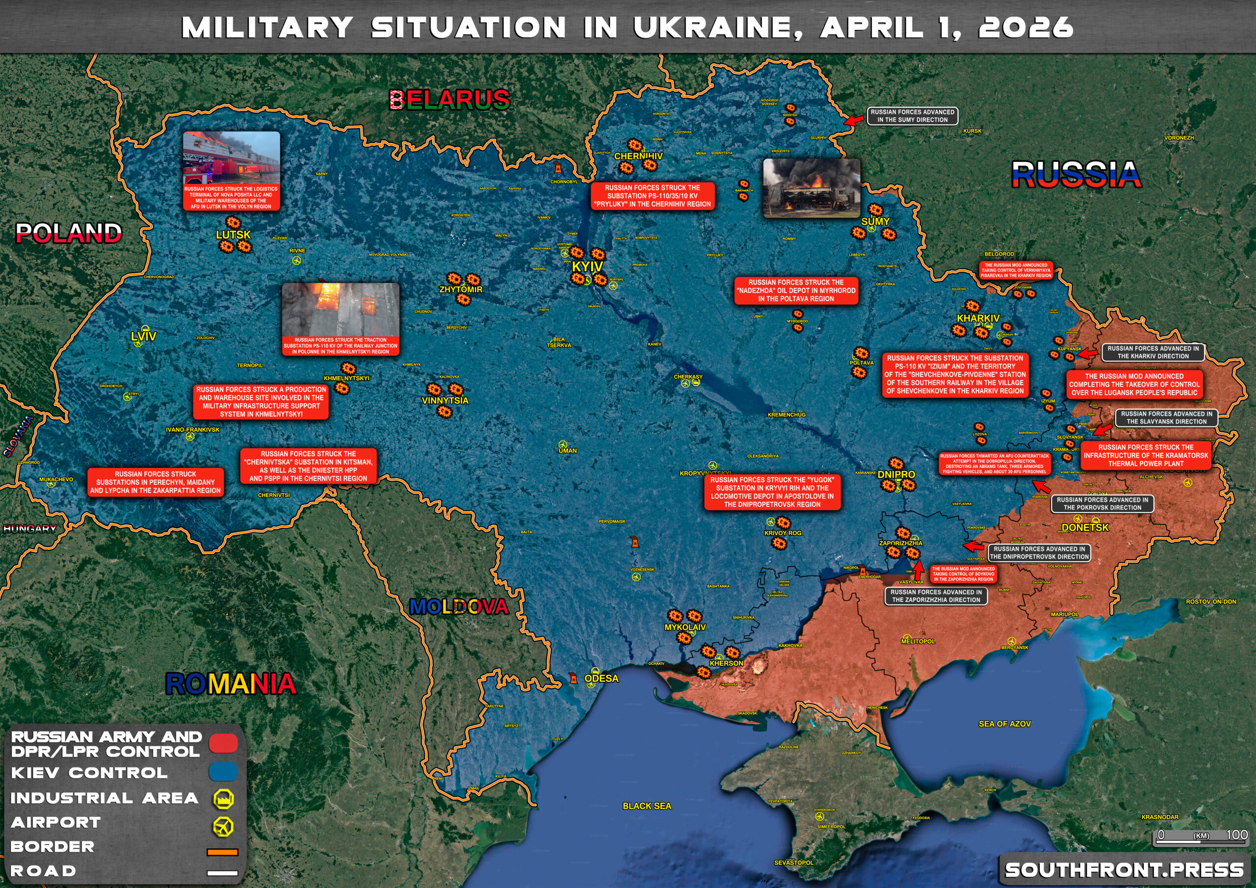 - Russian forces struck the logistics terminal of Nova Poshta LLC and military warehouses of the AFU in Lutsk in the Volyn region;