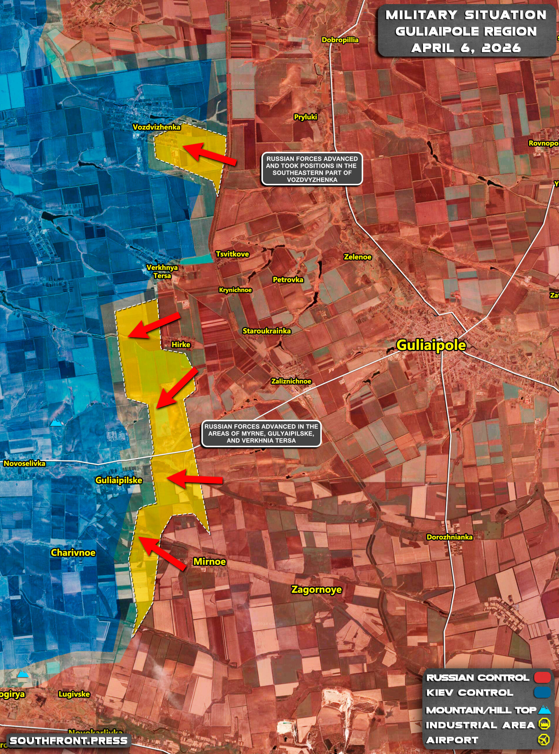 - Russian forces advanced in the areas of Myrne, Huliaipolske, and Verkhnia Tersa.